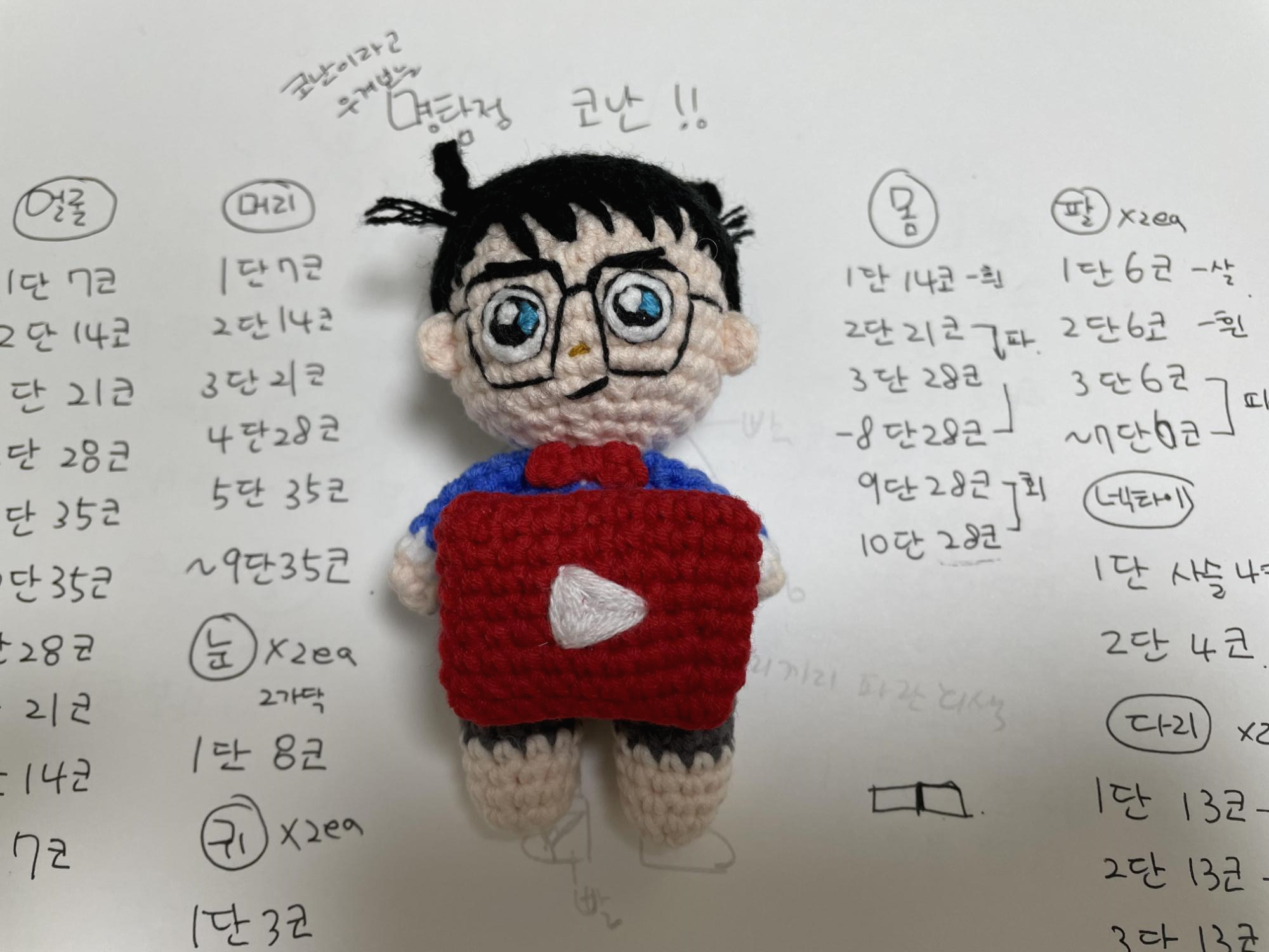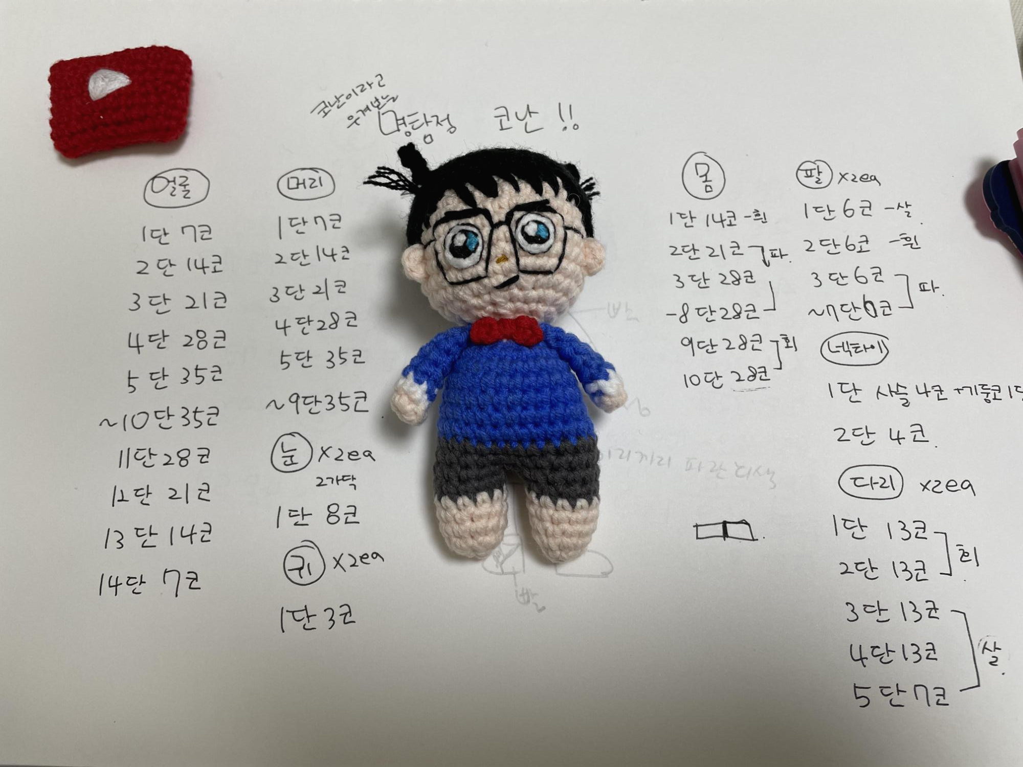 손뜨개 코바늘 명탐정 코난 인형만들기는 베개거지 유튜브로도 제작되었습니다. ↓↓↓