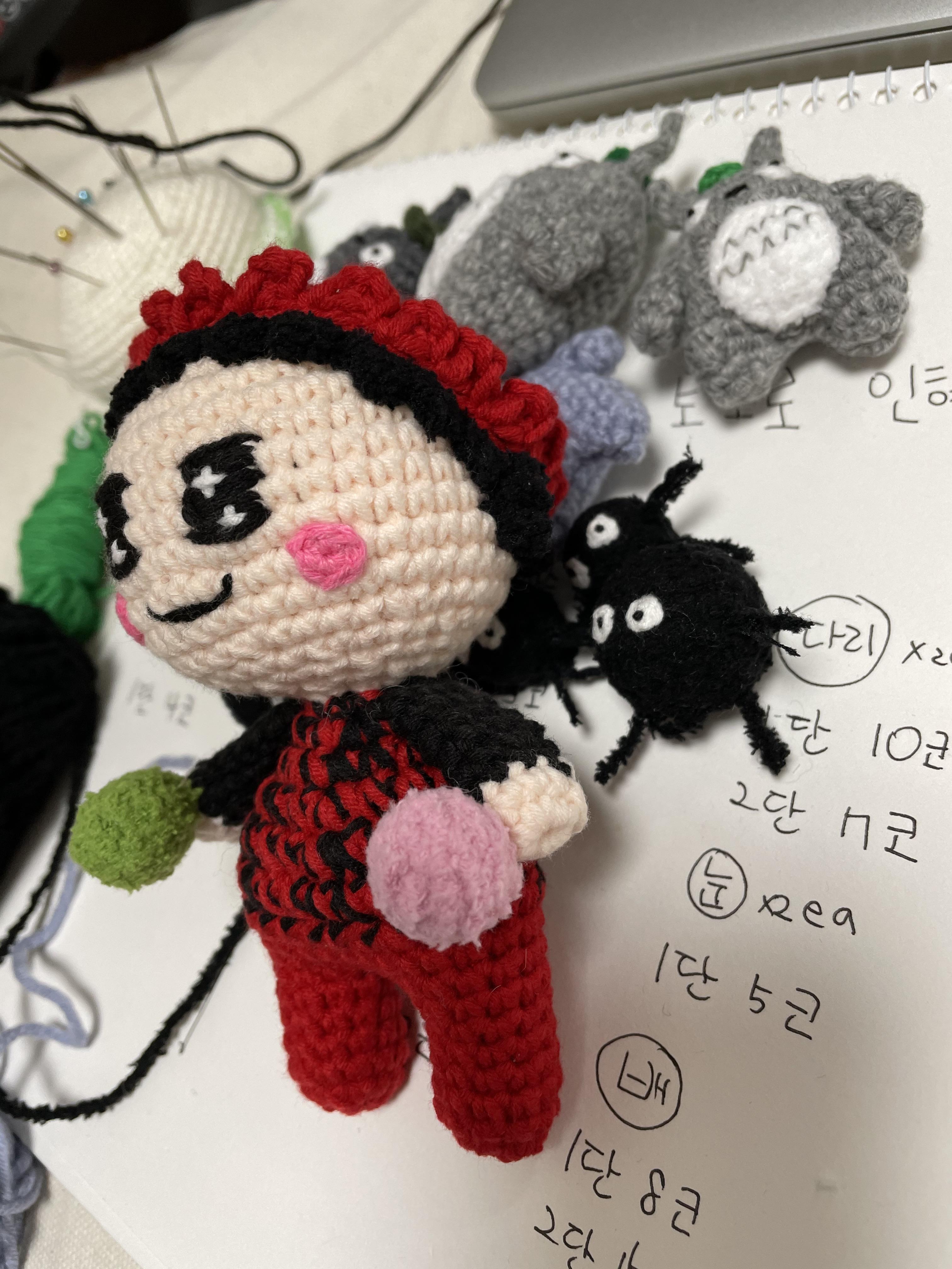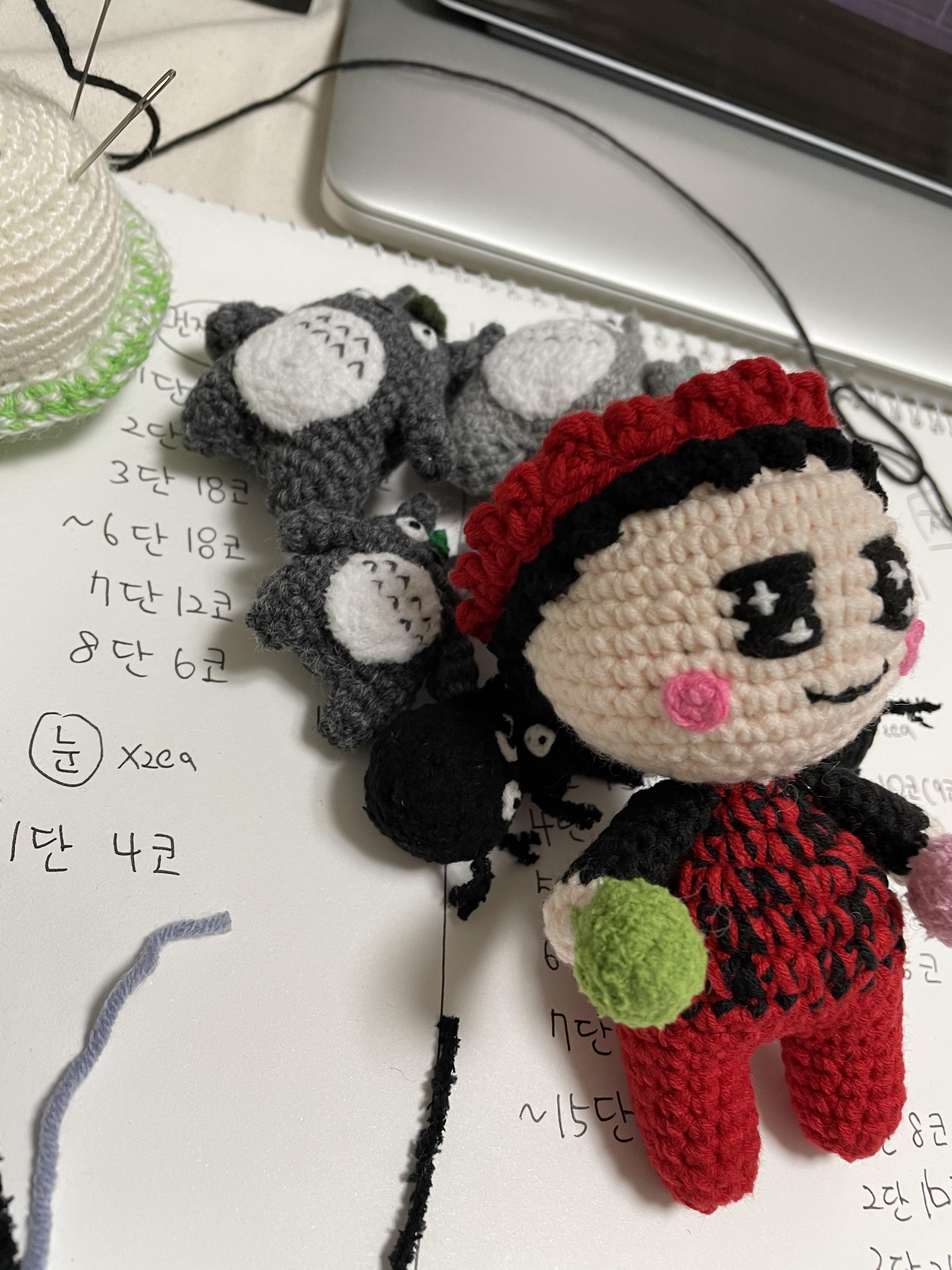 그래서 친구 엄마의 사진을 전송받아서 코바늘 엄마인형을 만들어봤습니다.