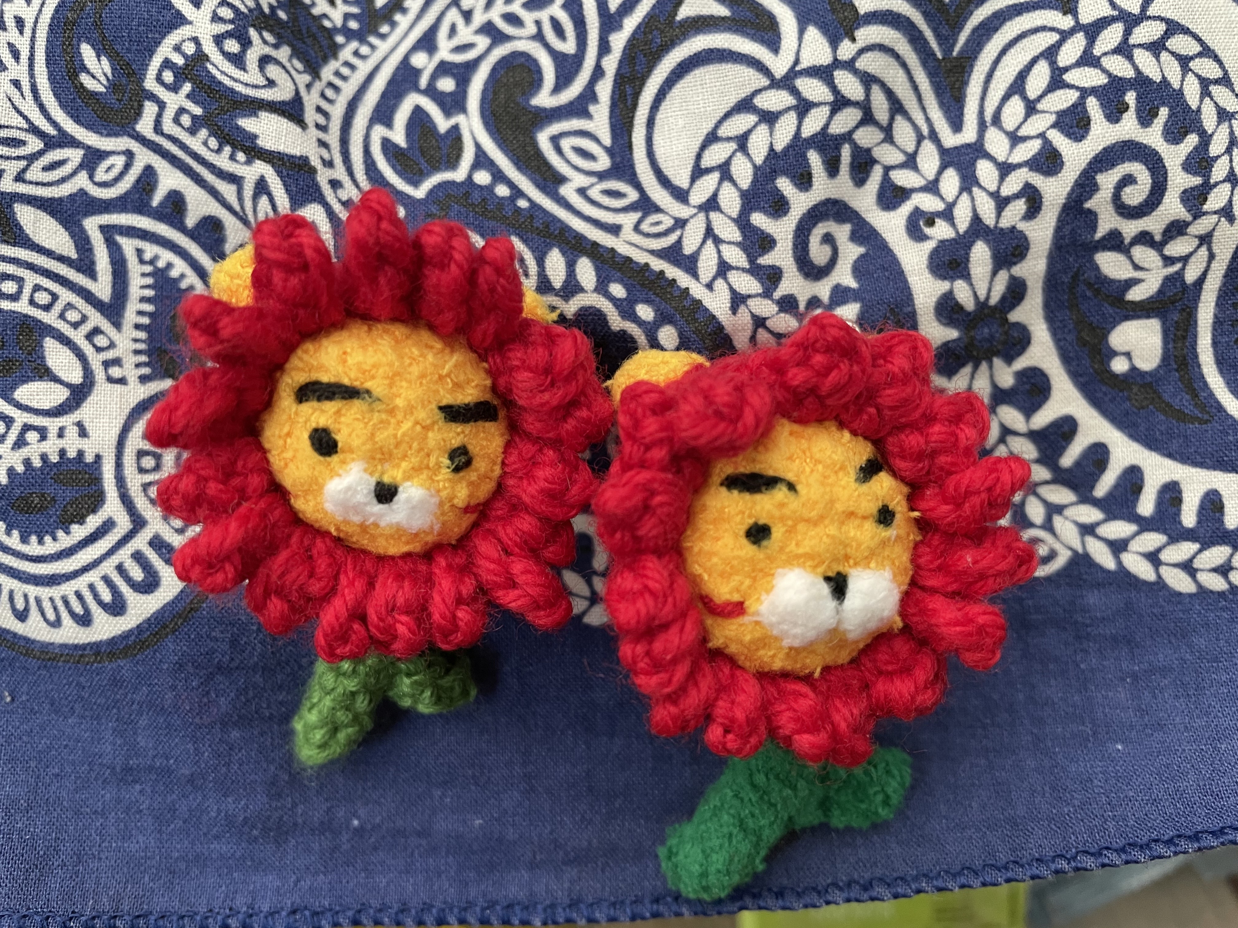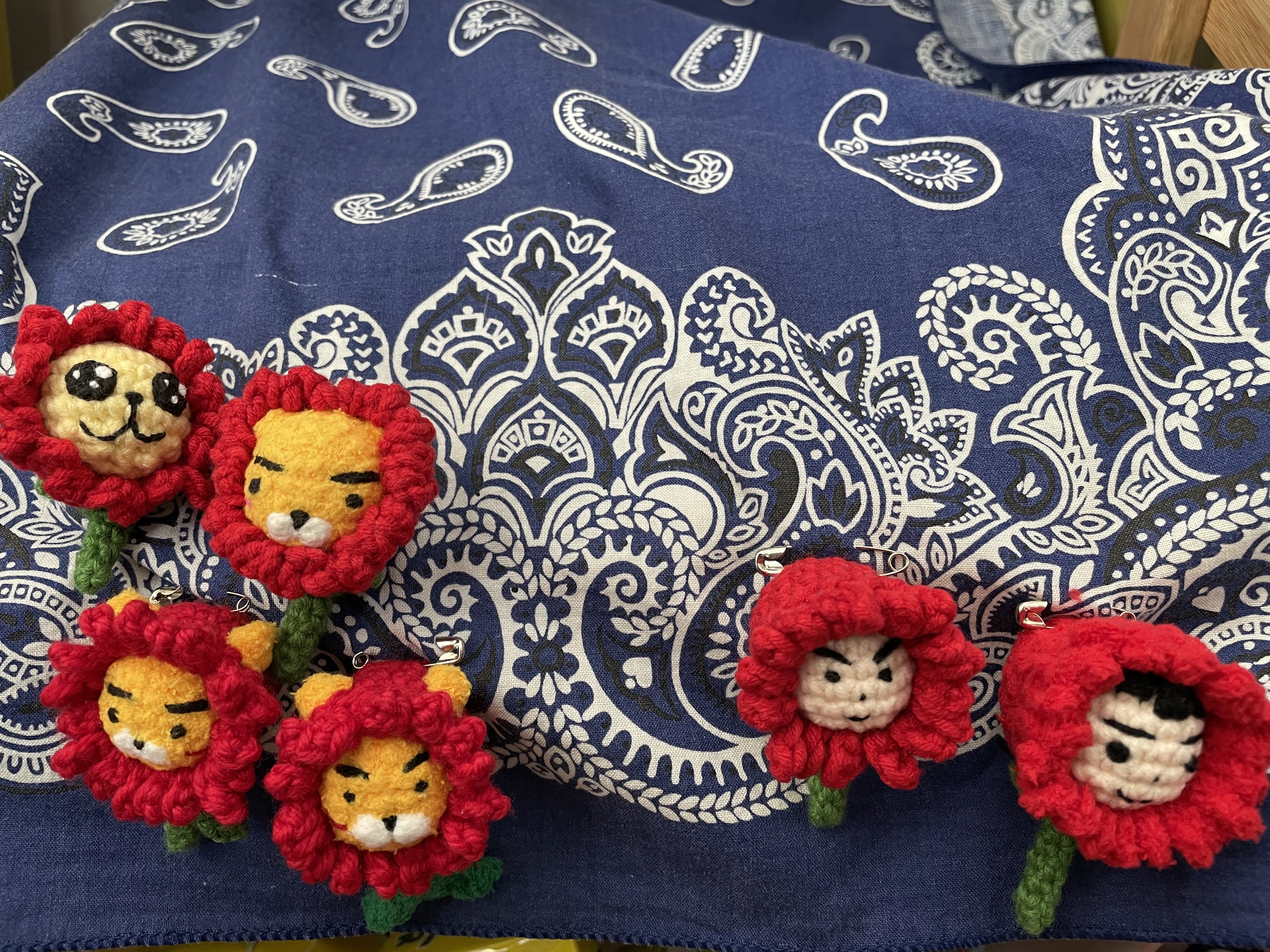 하나는 라이언 카네이션 브로치, 또 하나는 무지 카네이션 브로치.