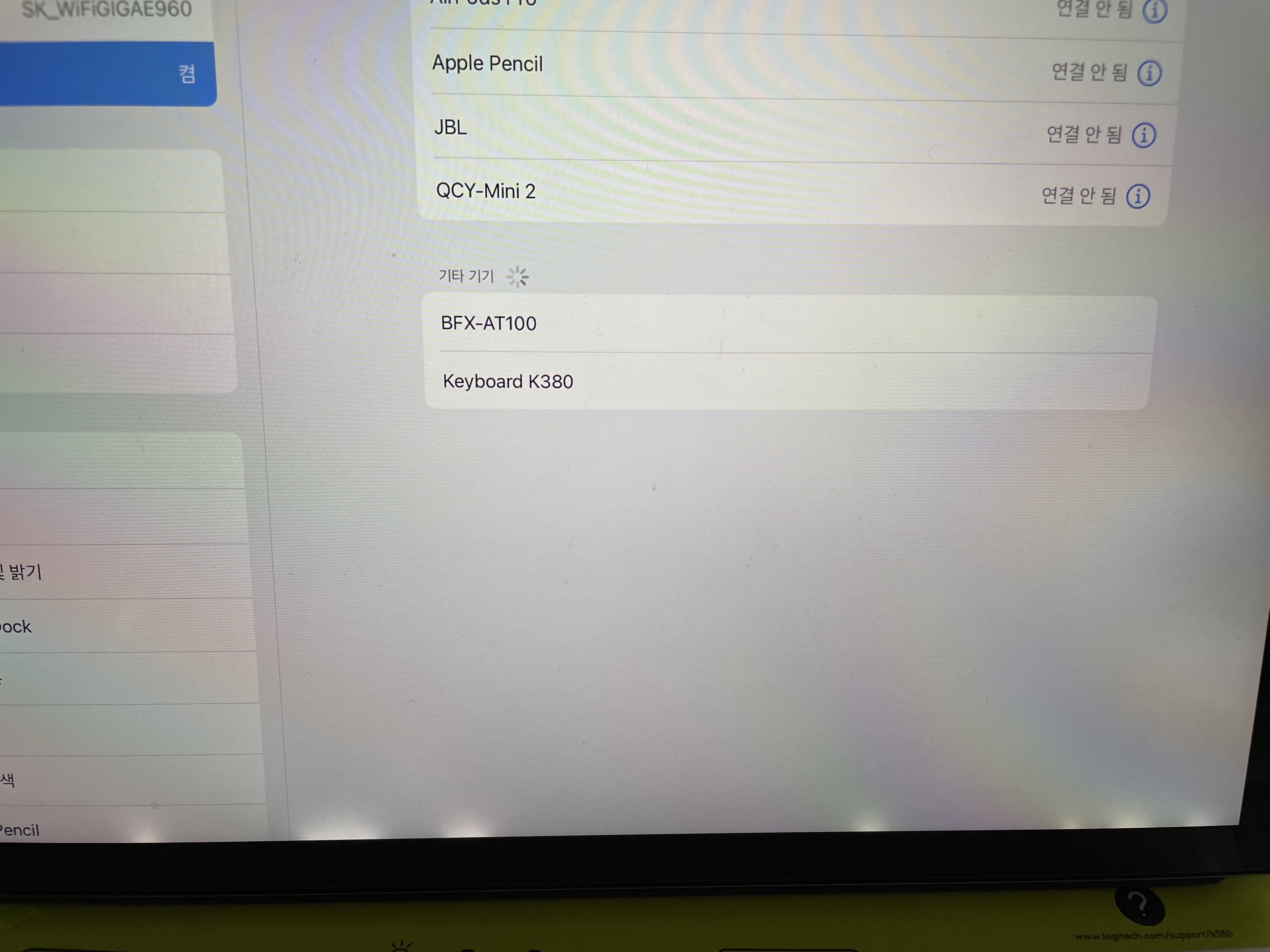 블루투스는 원래 켜놔서 기타기기부분 로딩을 하면 저렇게 Keyboard K380이 뜨는게 보이실꺼에요.
