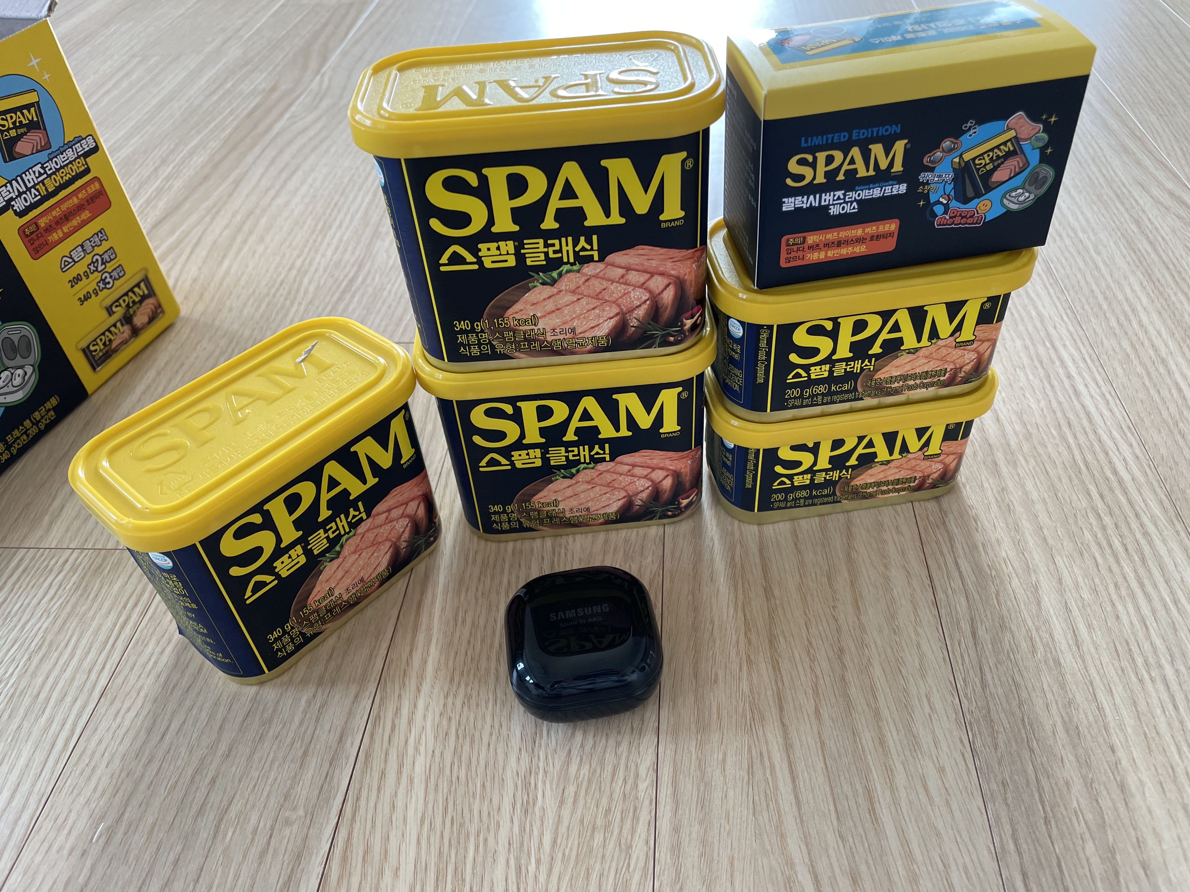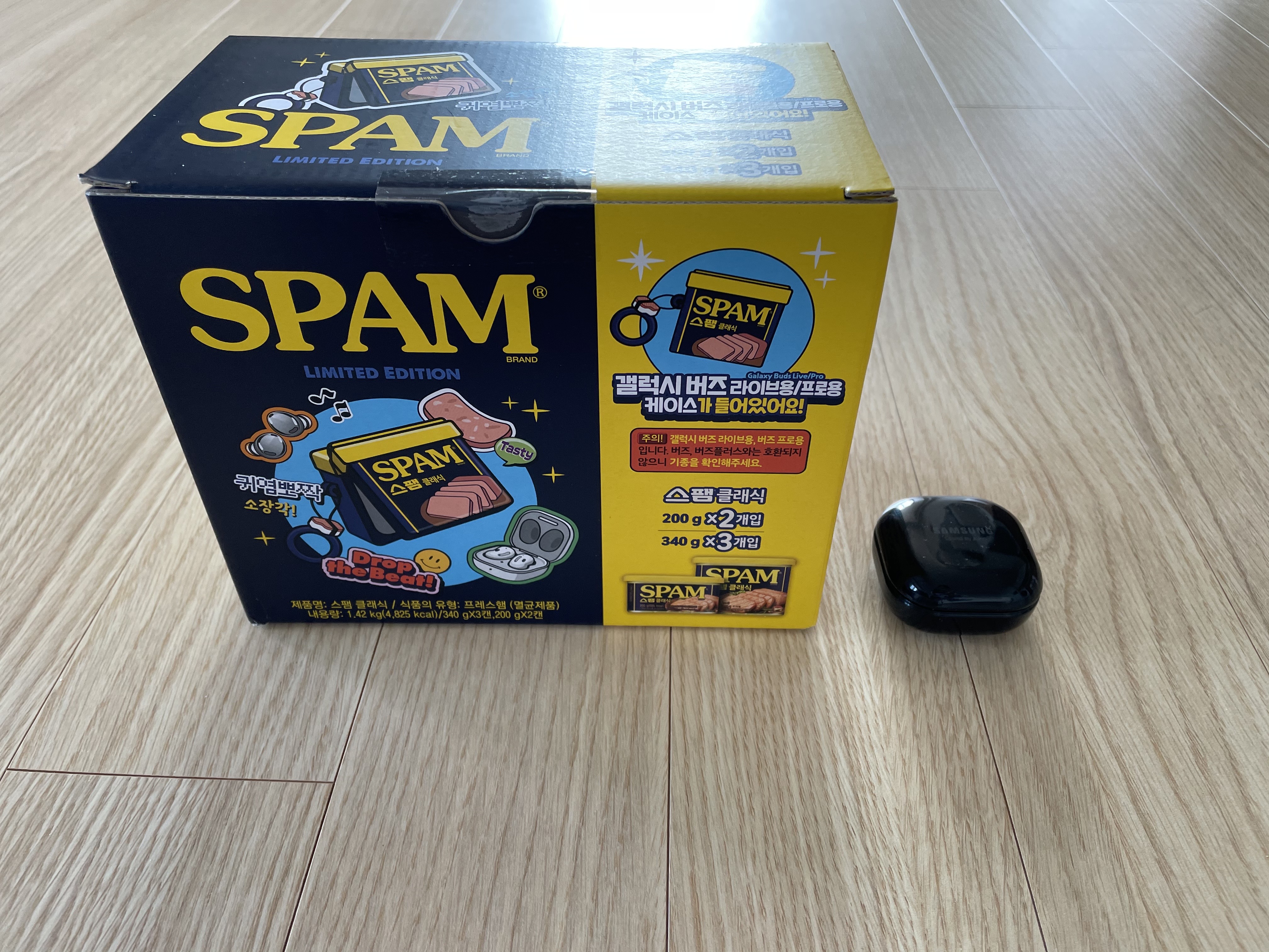 스팸클래식 갤럭시 버즈 한정판 가격은 22천원정도에 이마트에서 구입했습니다. 가격도 만족스럽습니다.