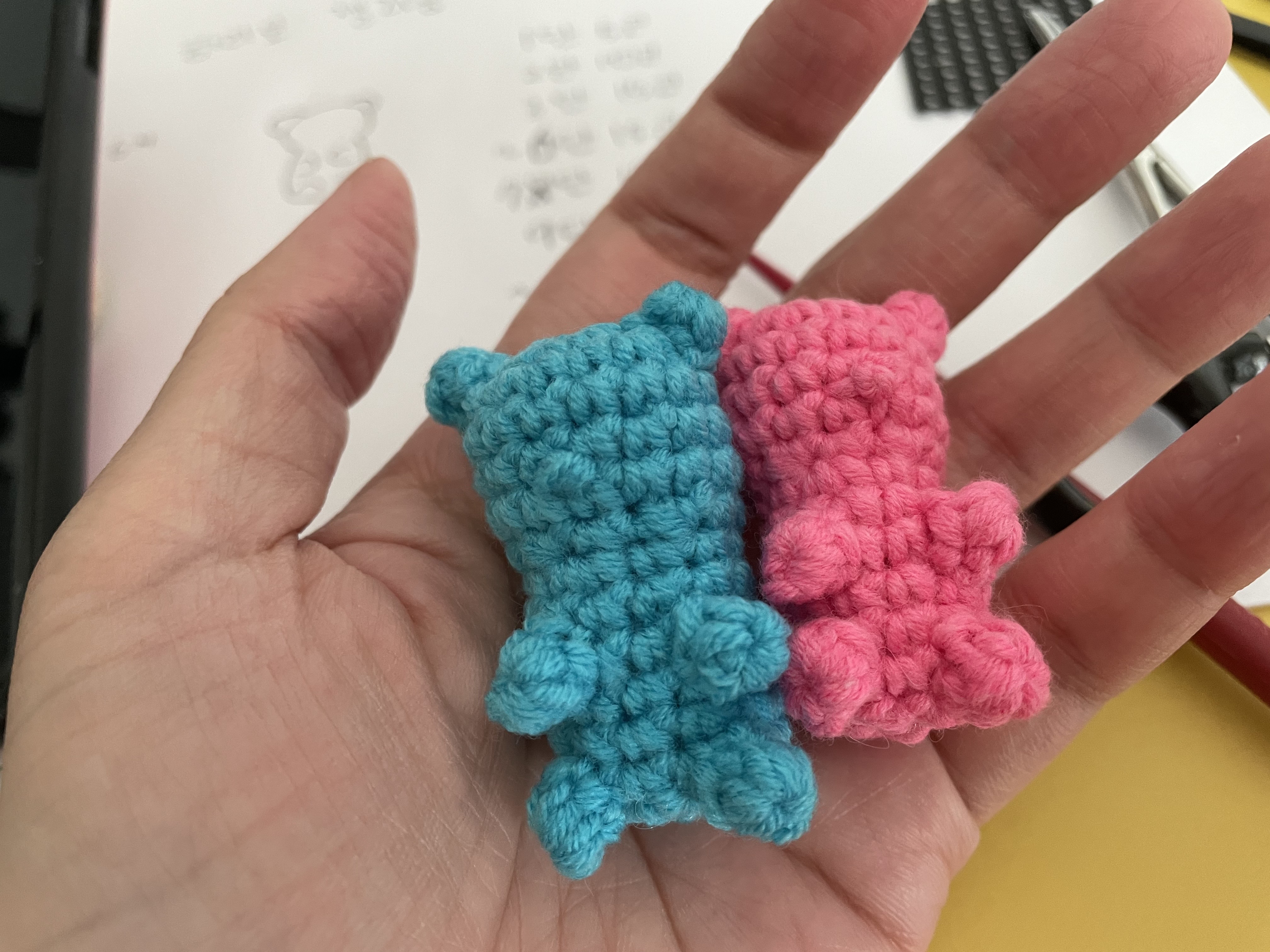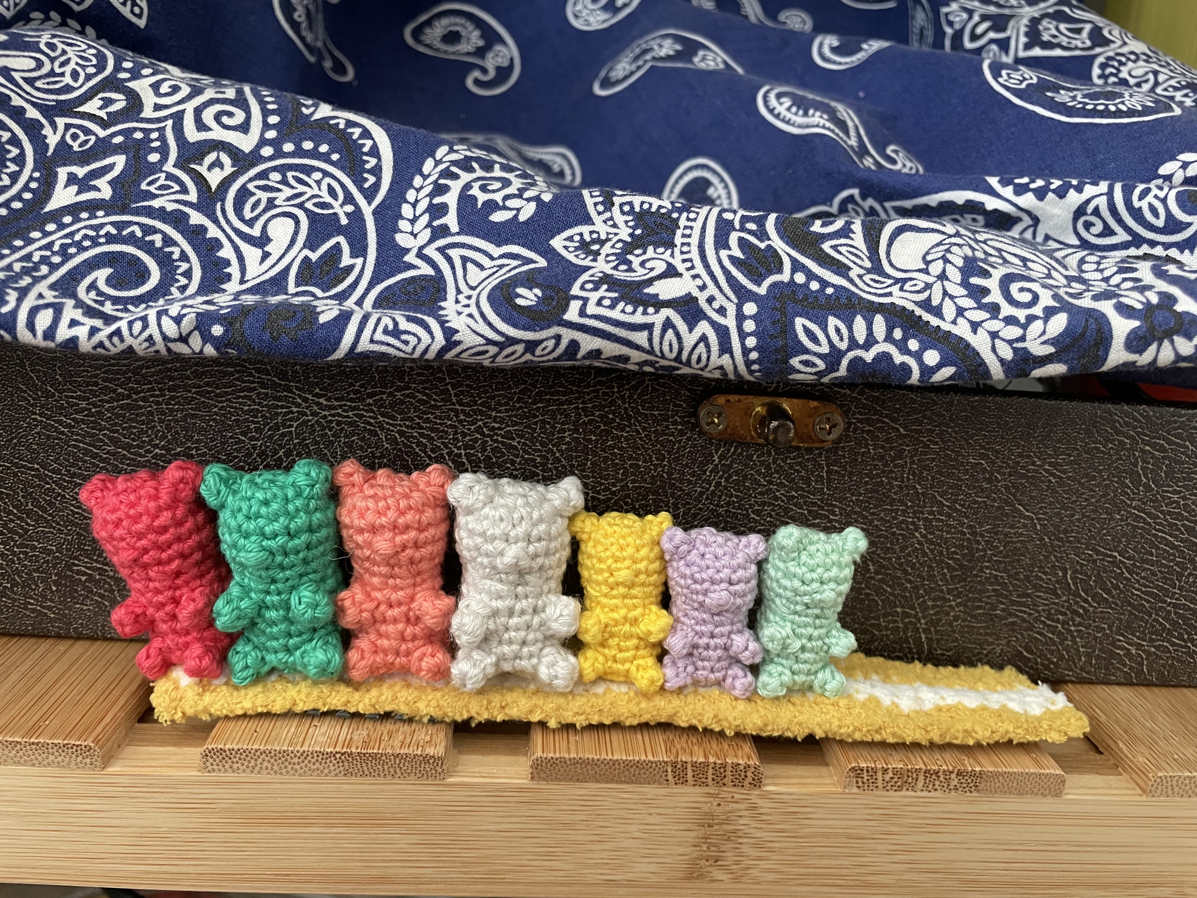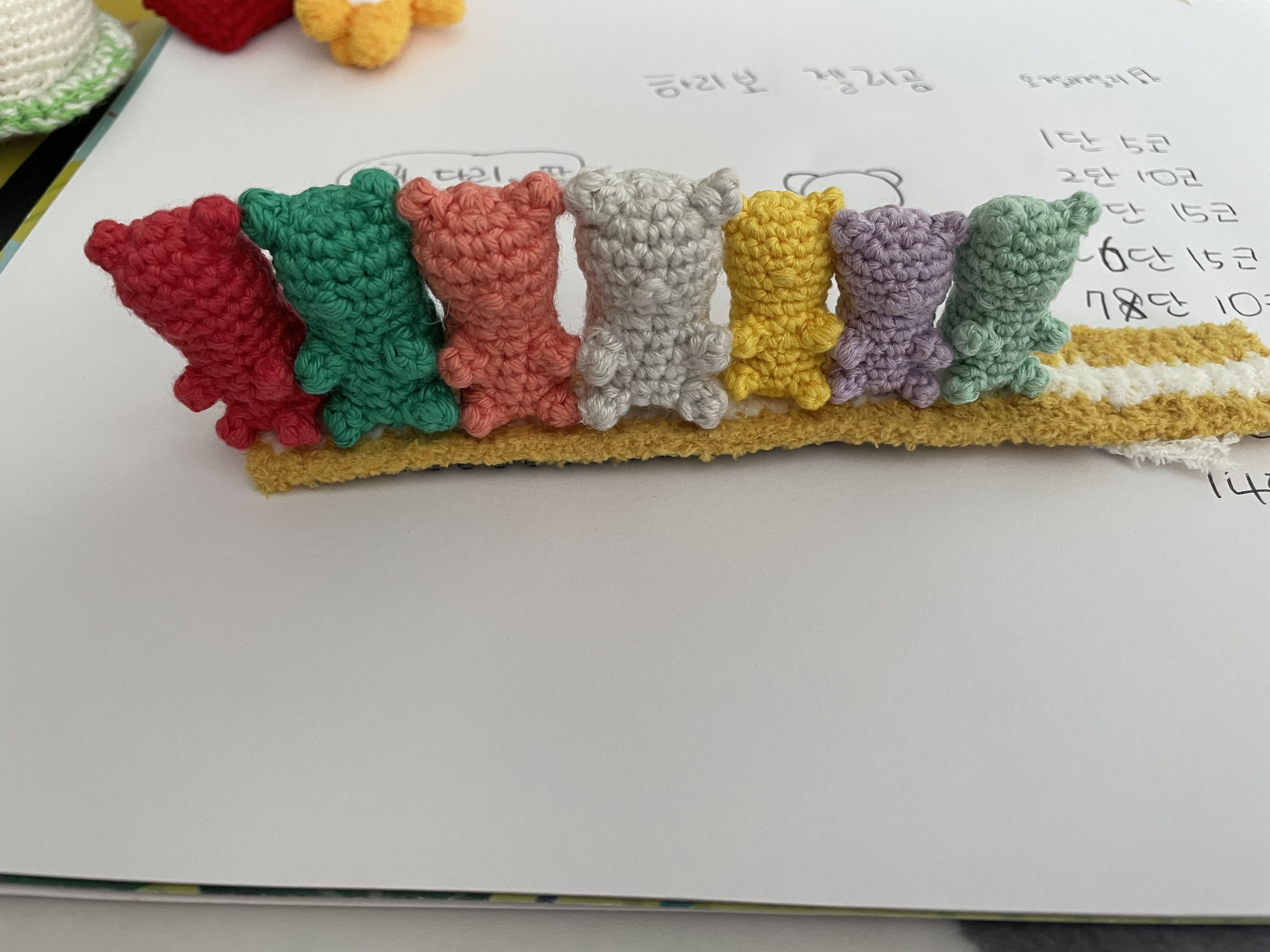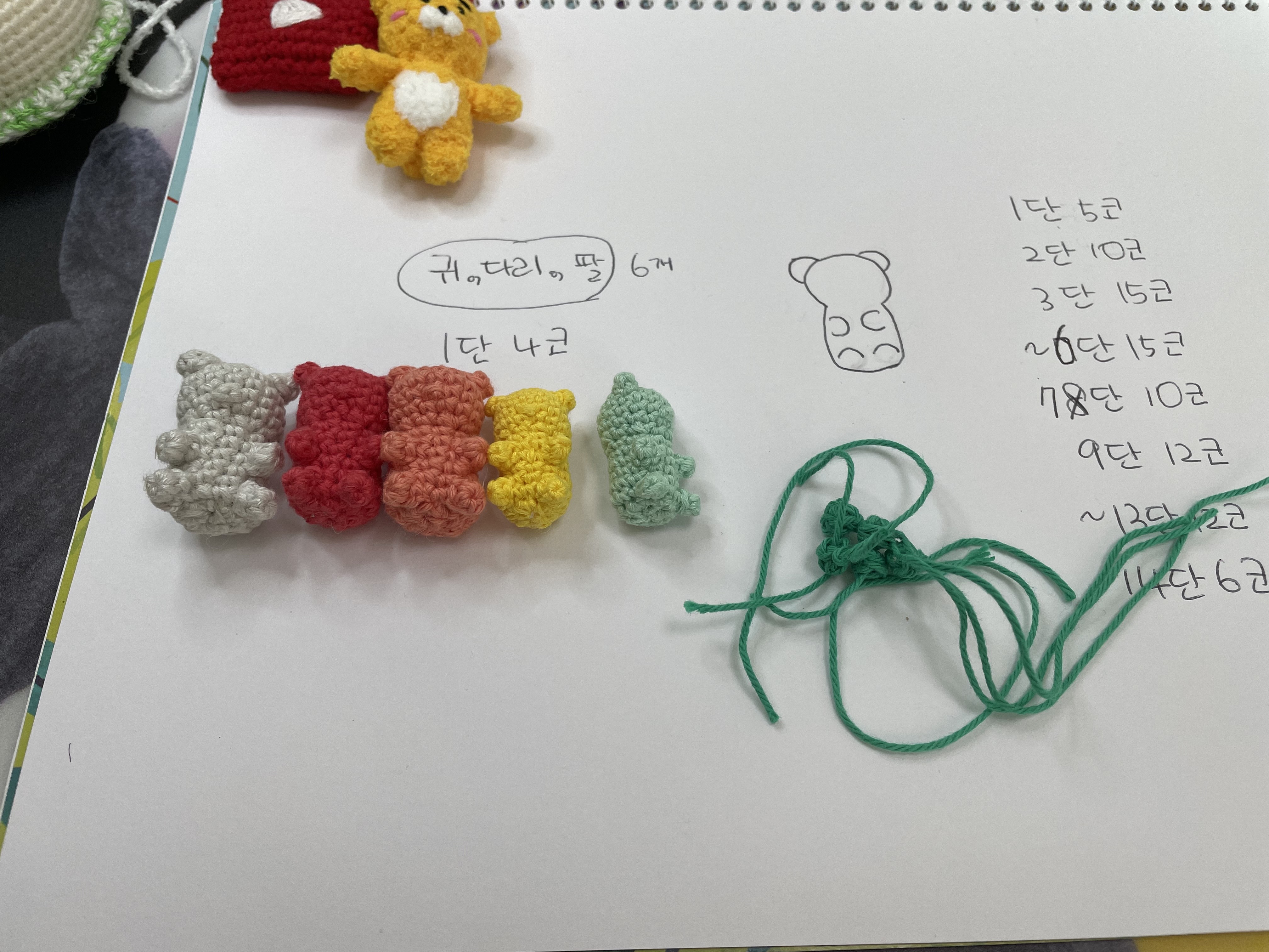 아.......자리가 남아버림.... 작은 곰젤리로 체우려면 3마리는 더 만들어야될거같아서 작전 변경!! 실두께가 두꺼운걸로 간다!!