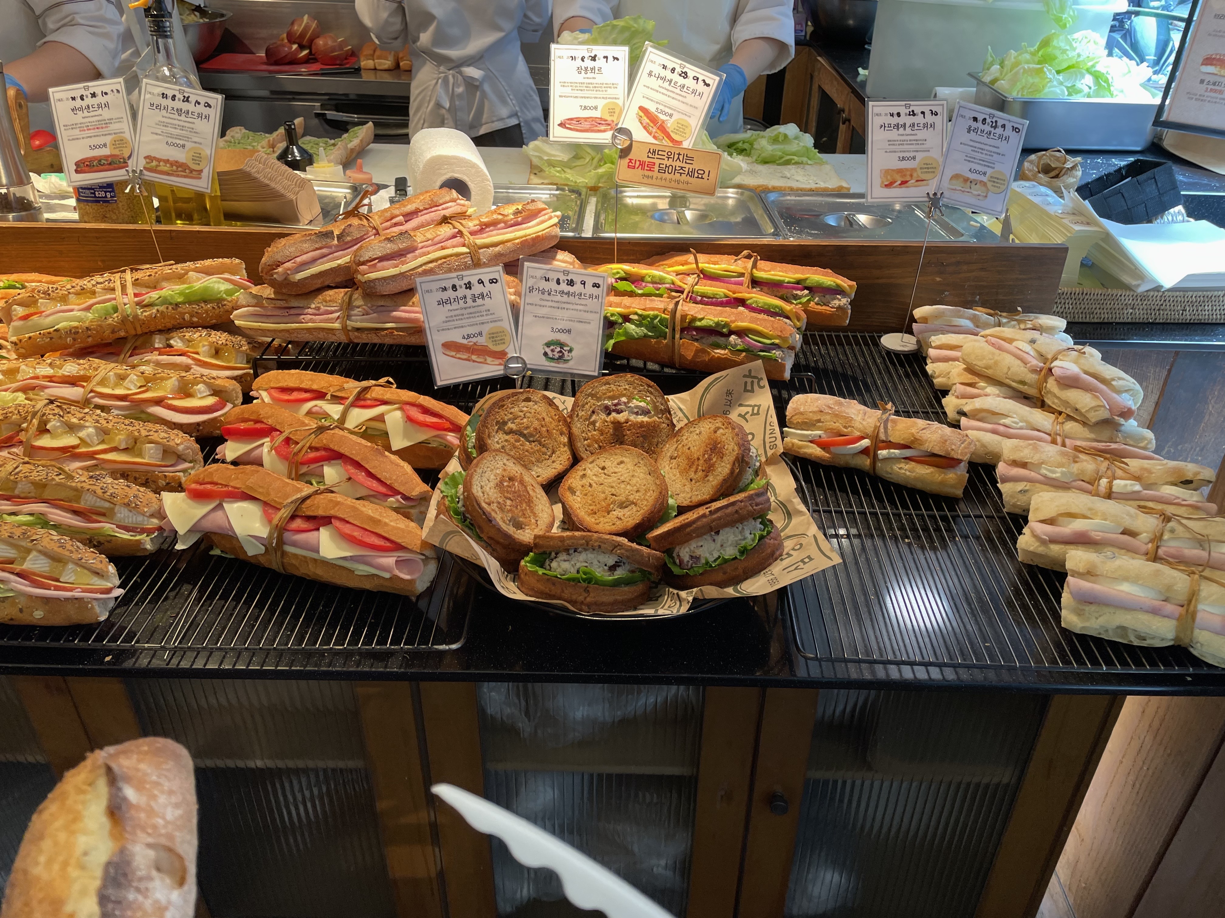 바게트류는 계산후에 컷팅해주는 시스템이더라구요. 먼저 잘라달라고 했다가 계산후에 오라고해서 뻘쭘해씸.. ㅋ