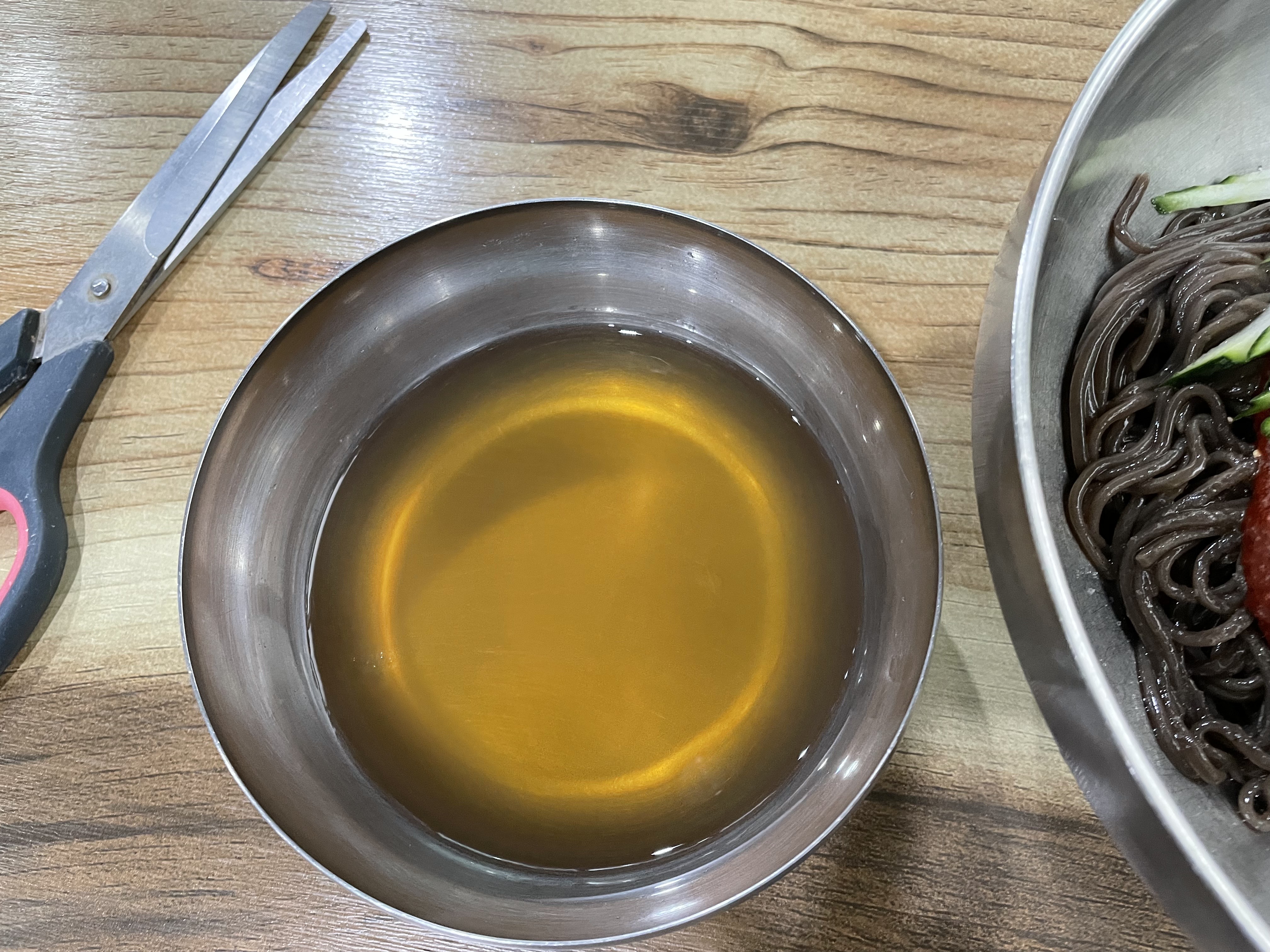 아마도 소바 국물 같았어요. 식초를 안넣었는데도 먹으면 시큼한 맛이 납니다.