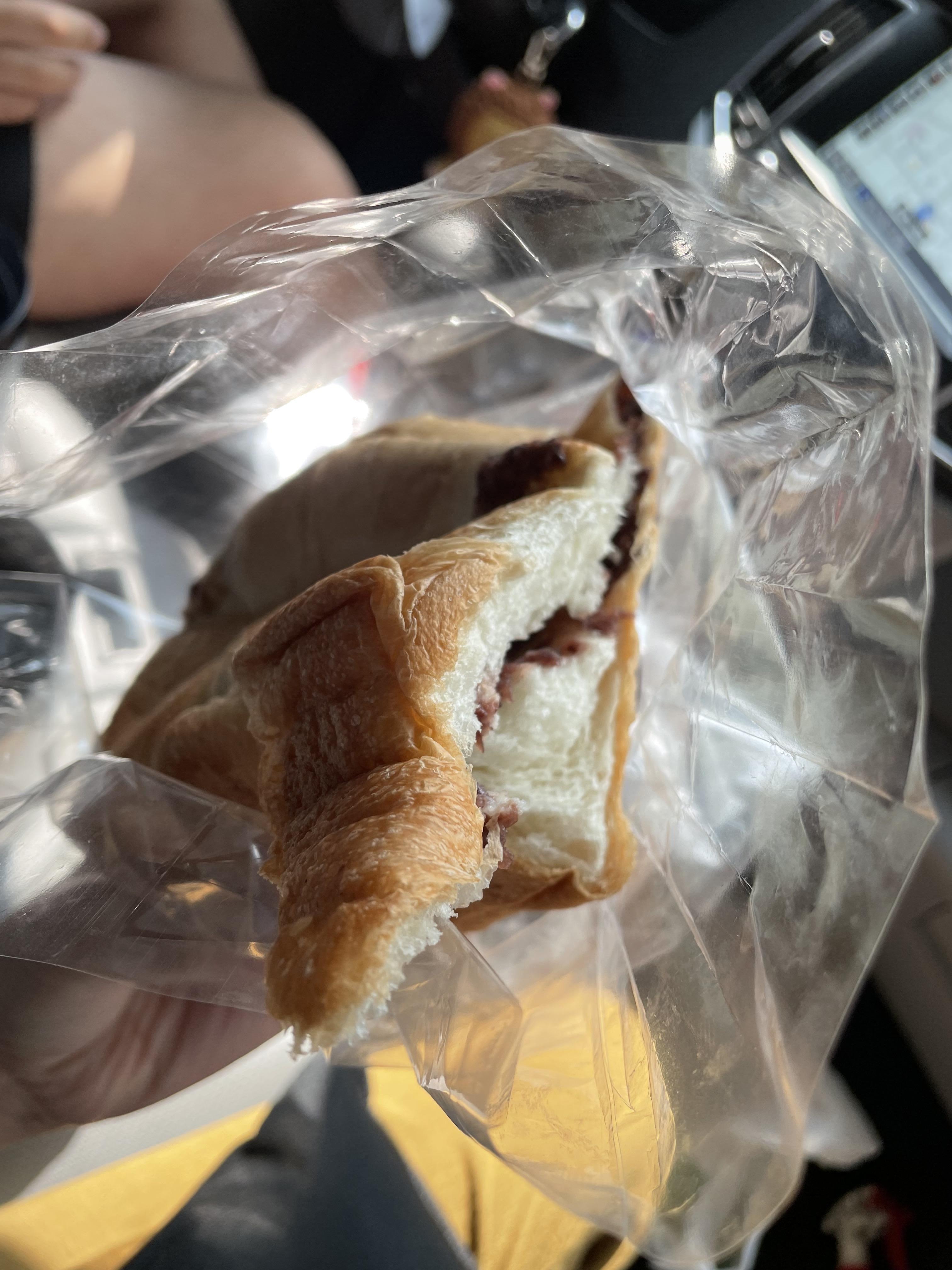 집으로 돌아오는길에 갓 나온 식빵의 향기에 도저히 참을수 없어서 빵을 뜯어먹었습니다. 팥크림이라고해서 팥이랑 생크림이 들어있을줄알았는데 팥소만 들어있습니다.