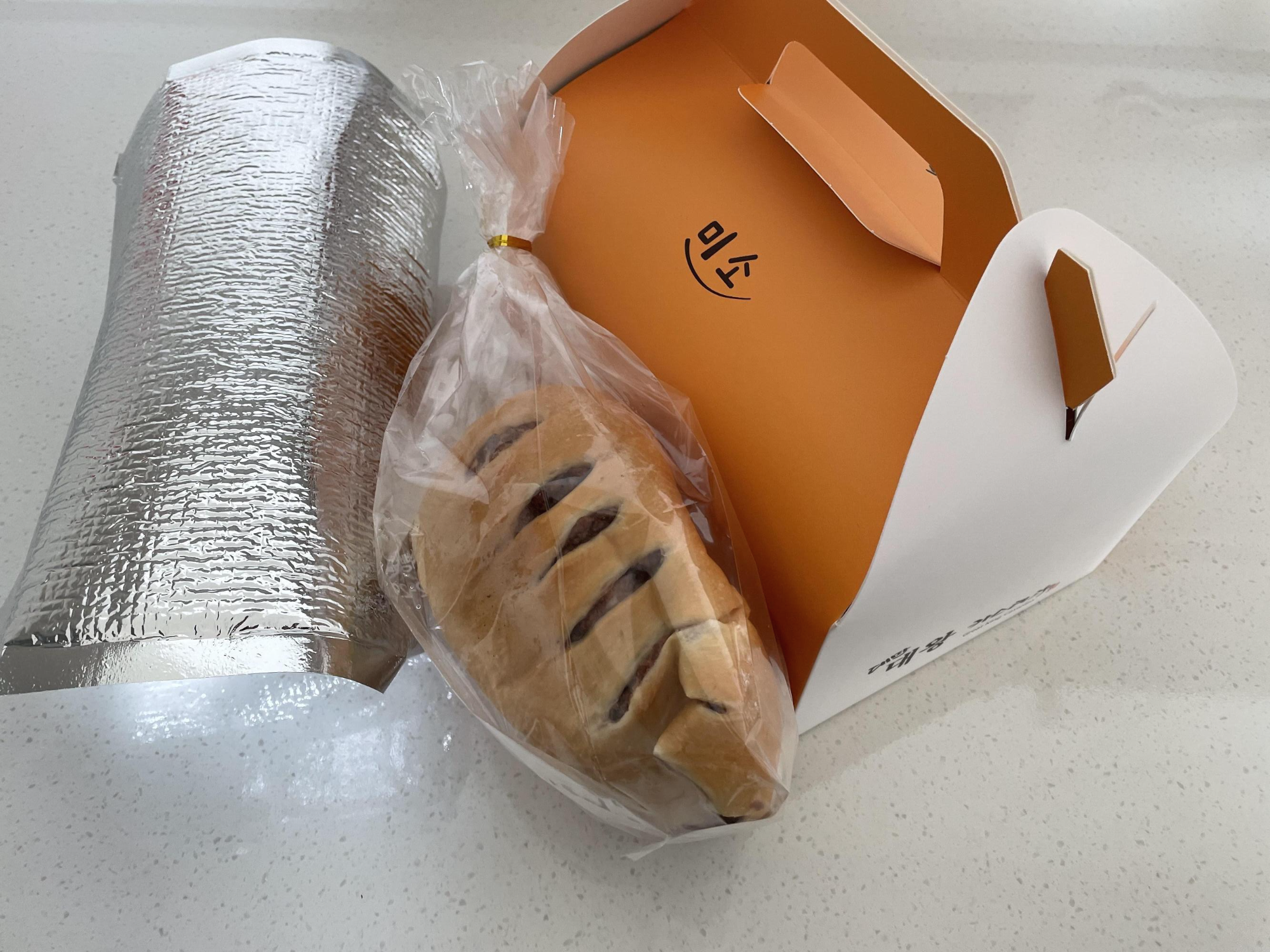 냉장보관을 해야하기때문에 보냉백에 넣어주십니다. 빵칼도 동봉되어있습니다.