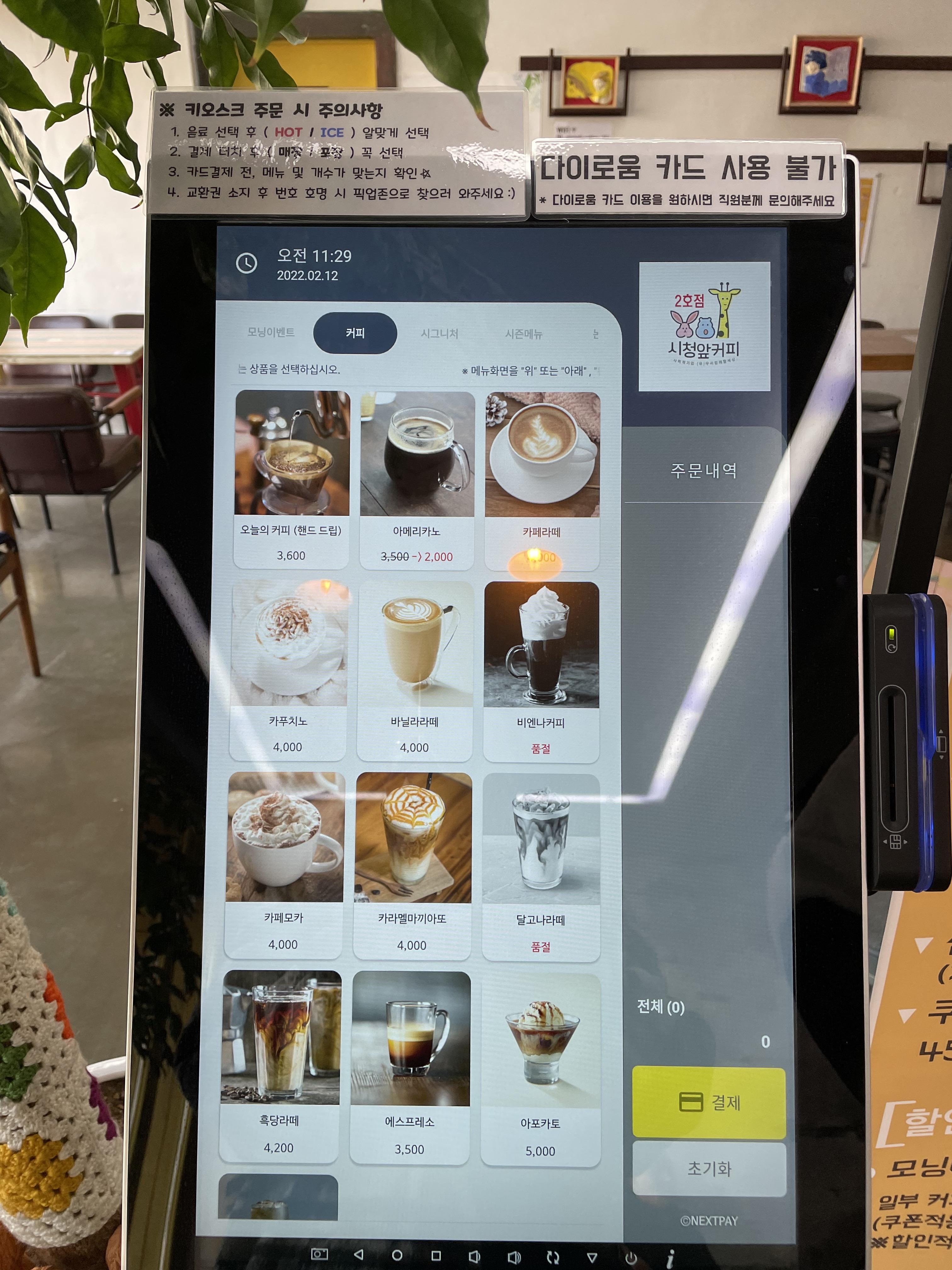 다이로움카드는 키오스크말고 직접 직원분에게 말씀하시면 적용됩니다.