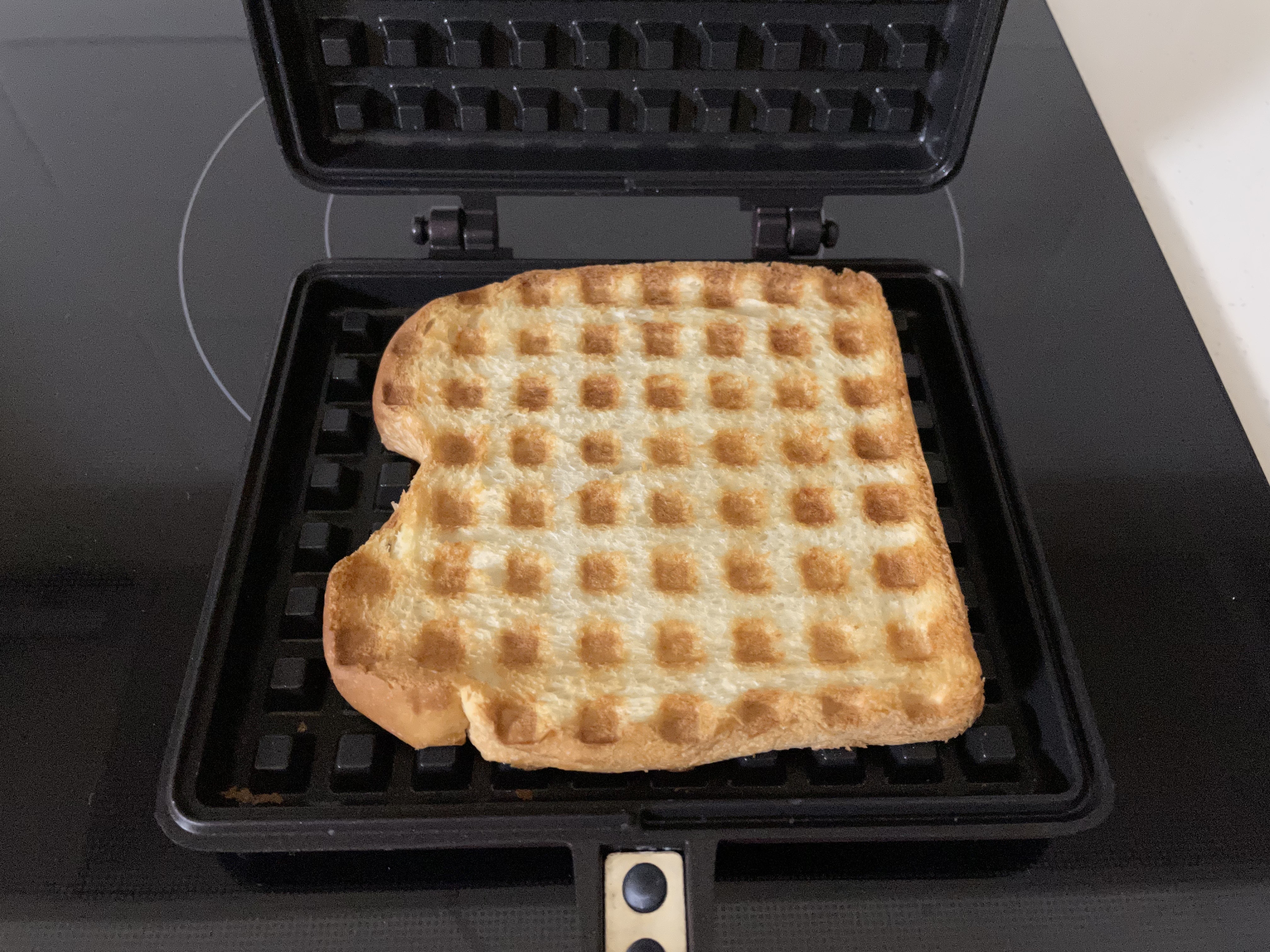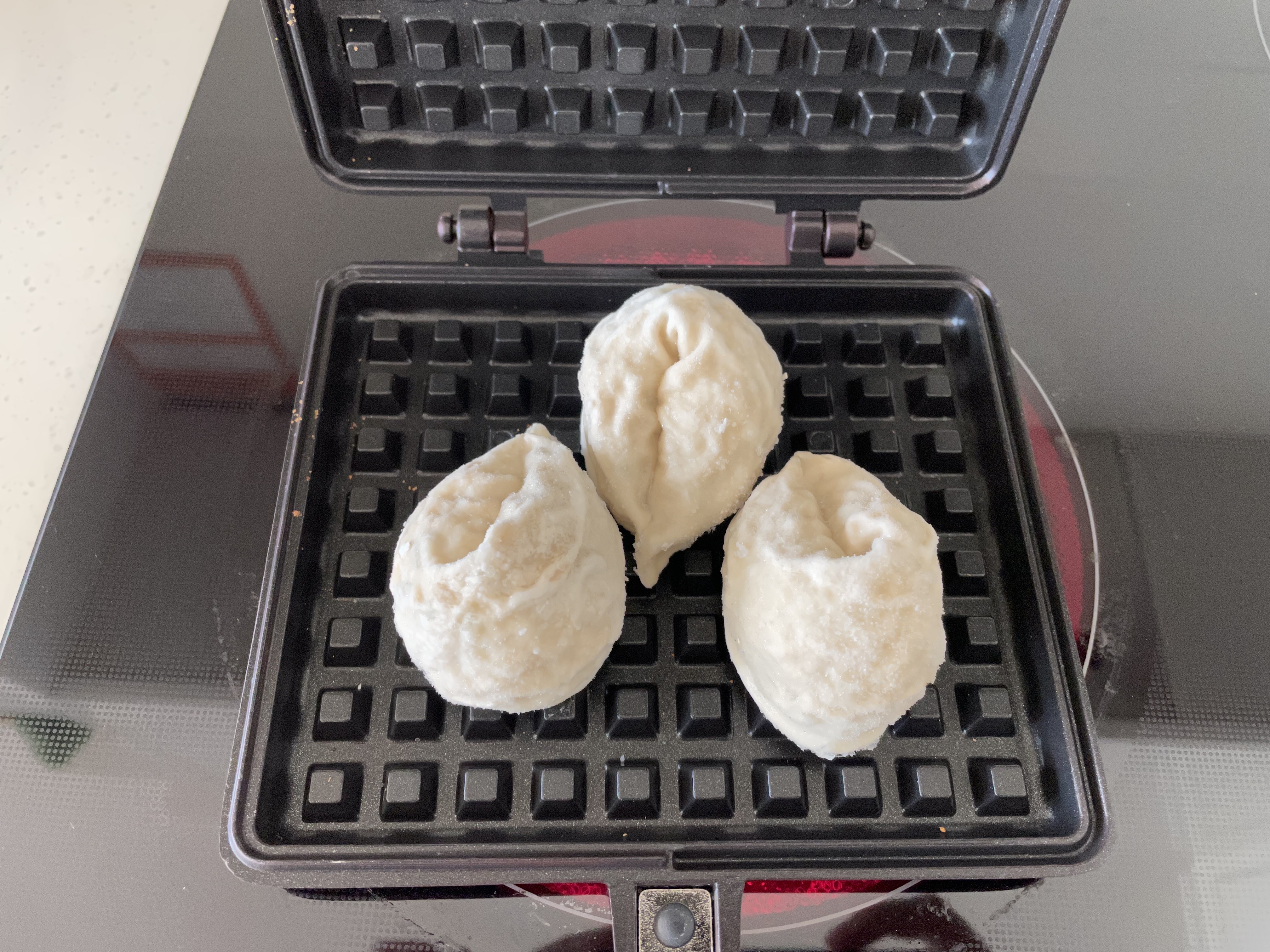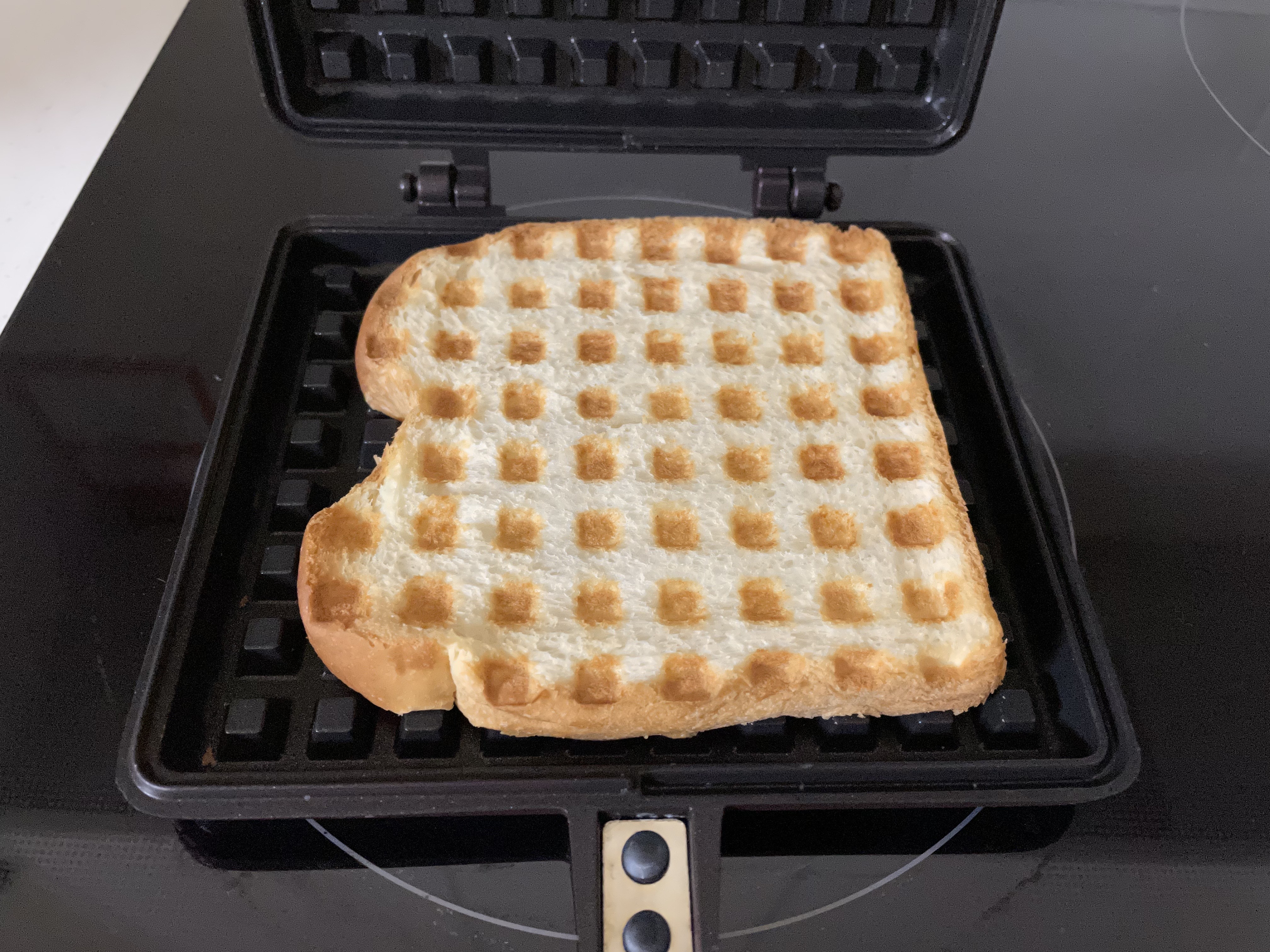 겉바속쫀. 저 떡 별로 안좋아하는데요. 와플기에 눌러먹으니까 맛있더라고요.