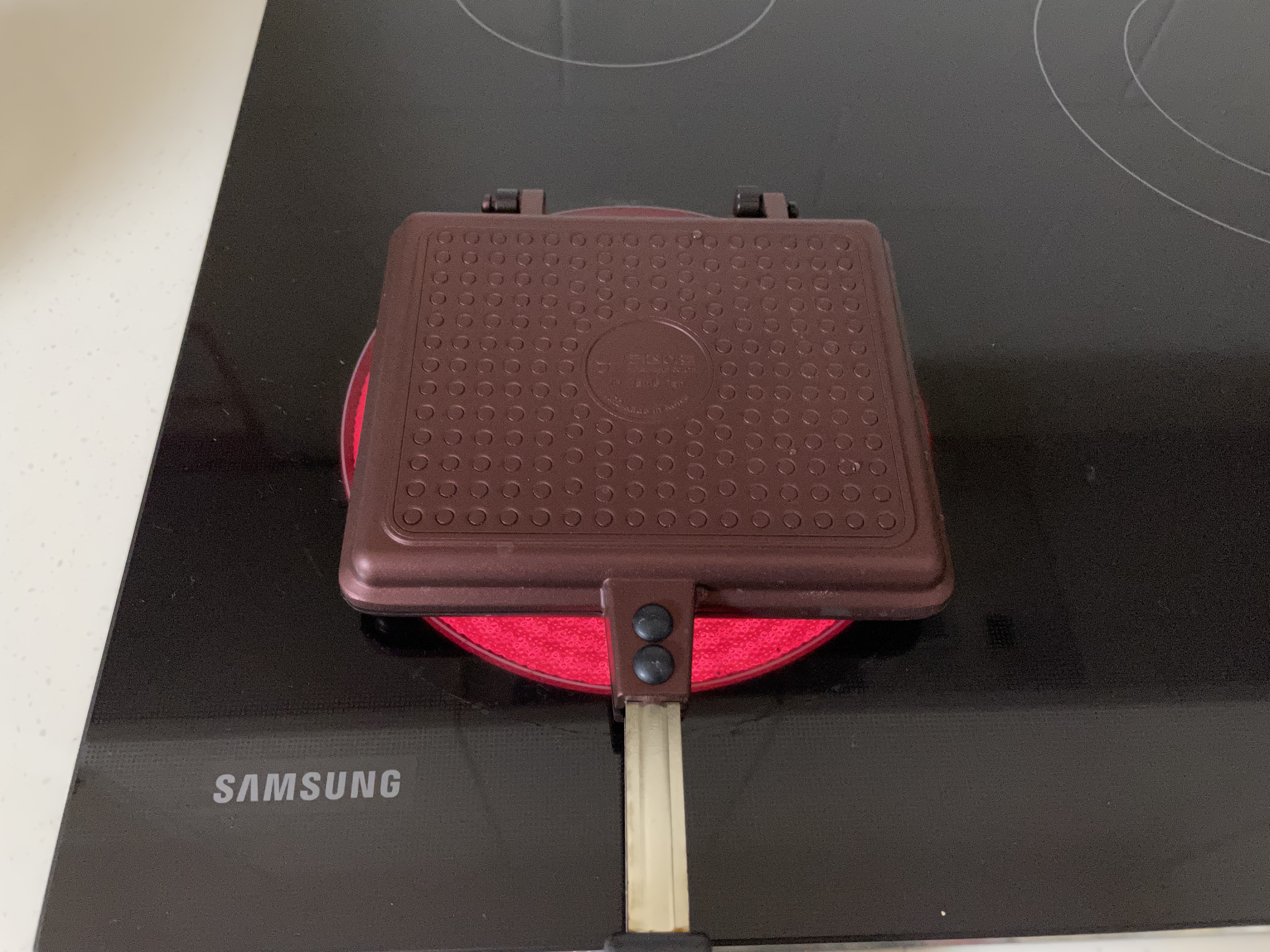 키친아트에서 나온 티타늄 코팅 와플팬입니다. 하이라이터, 인덕션에서도 사용가능해요. 공간도 많이 안차지하는것같아서 요걸로 구입했습니다.