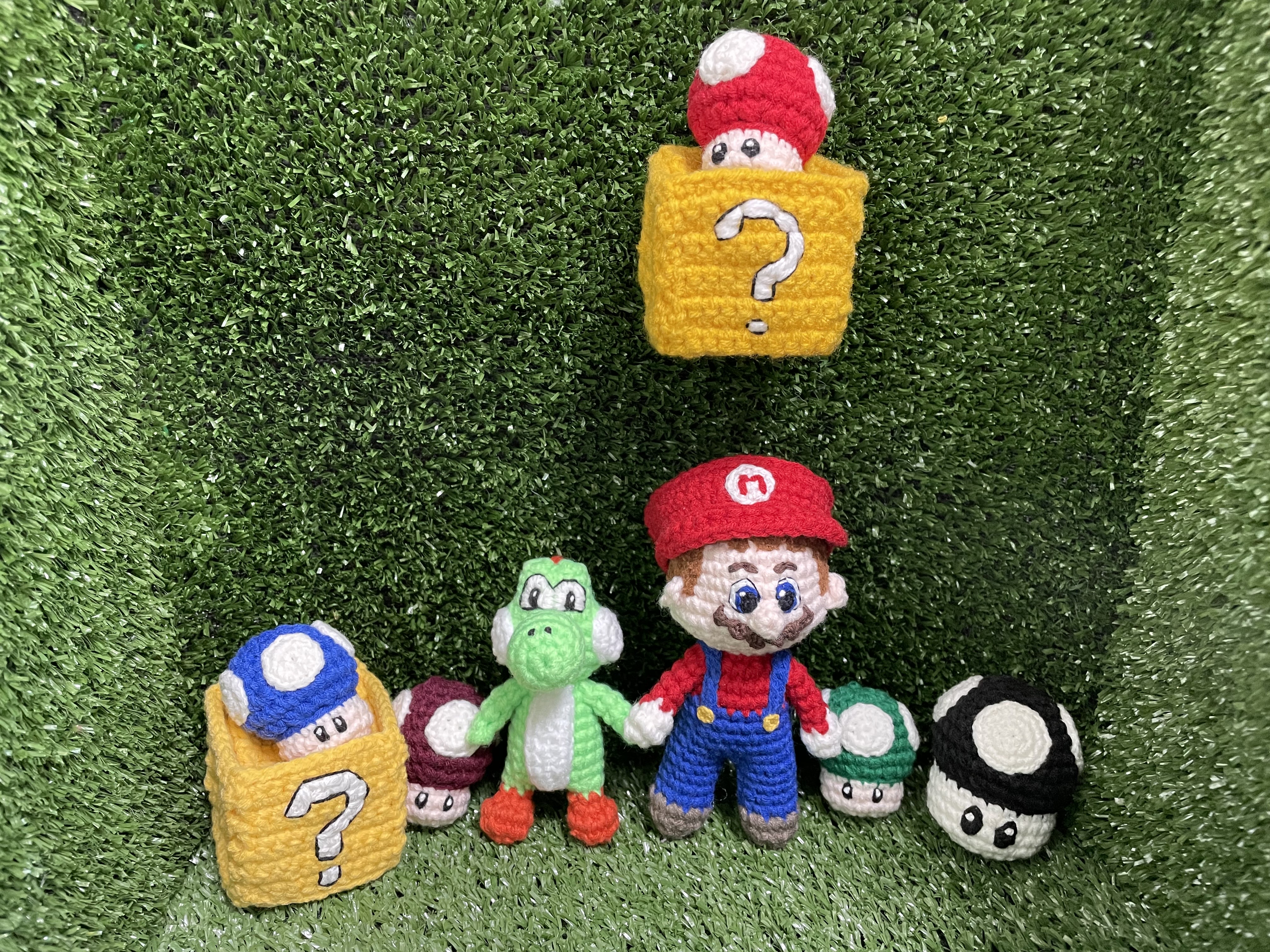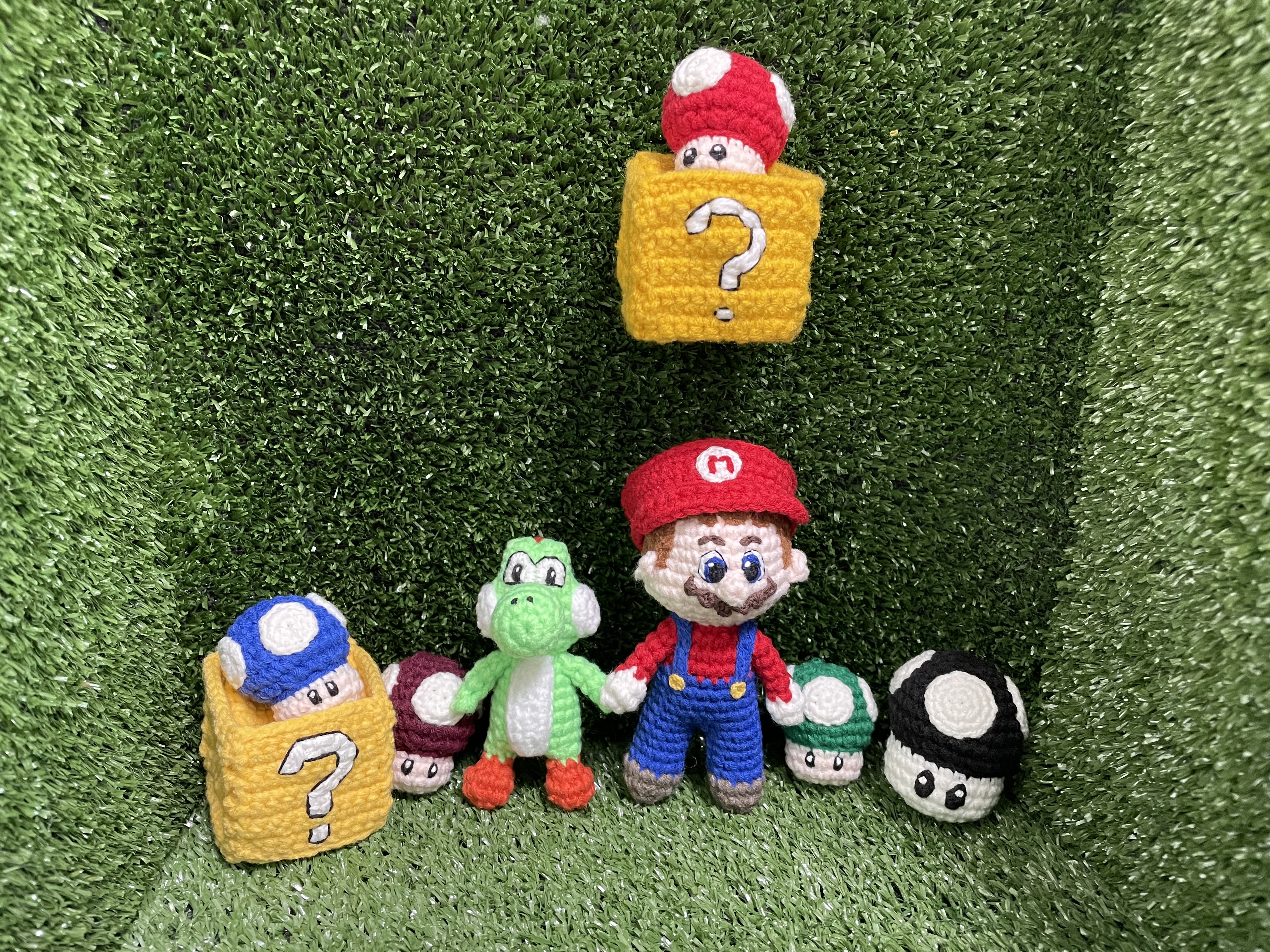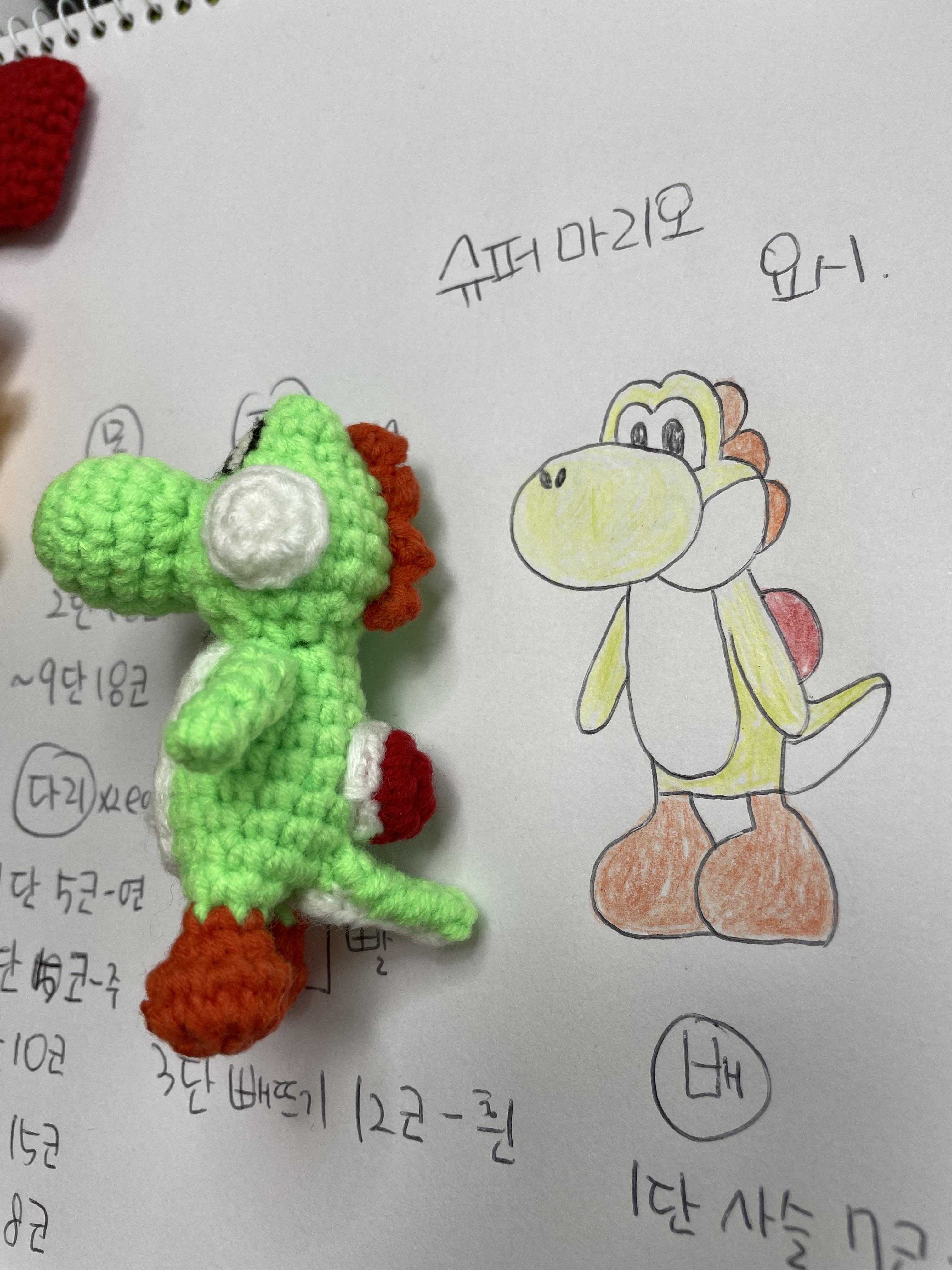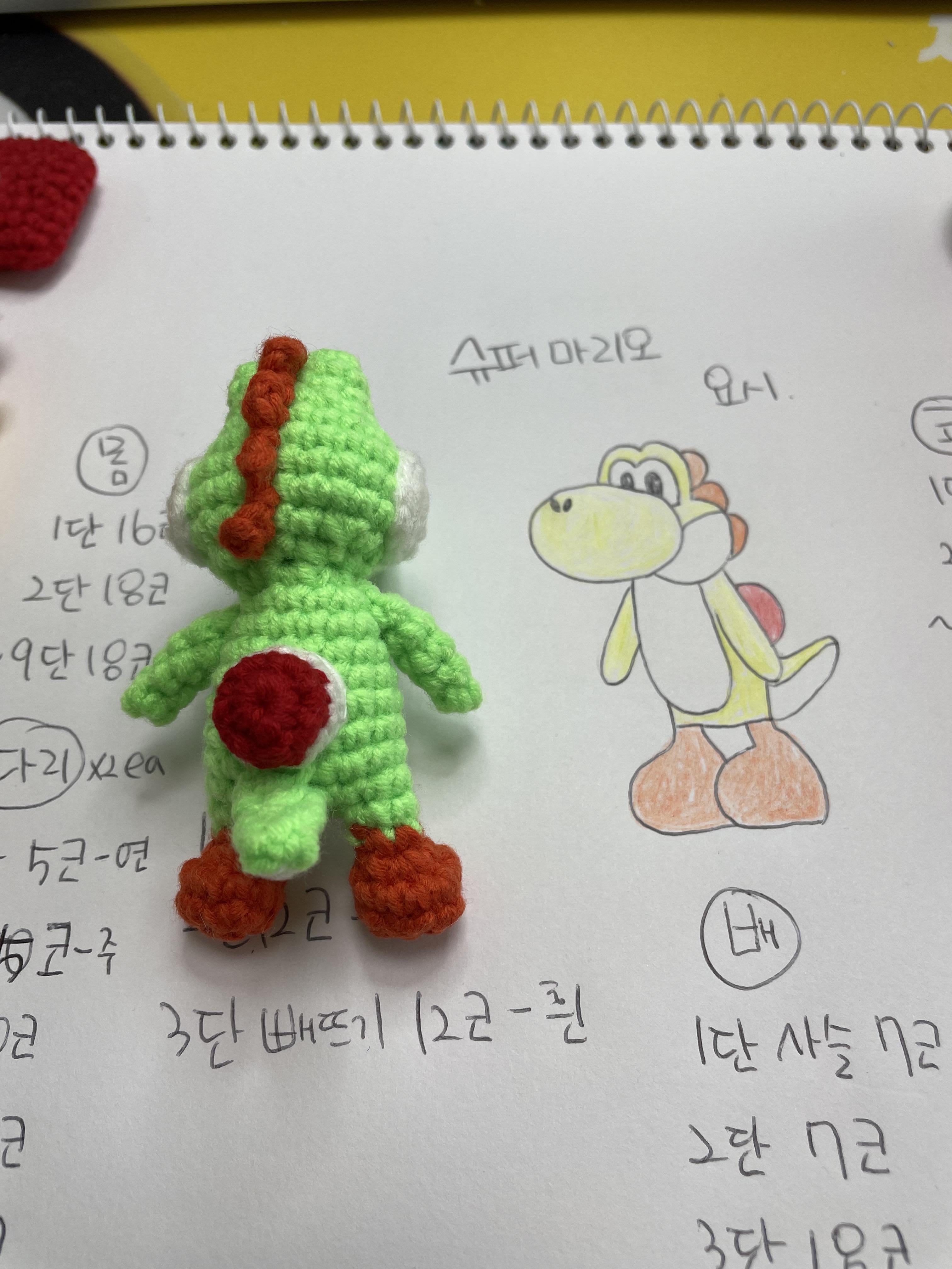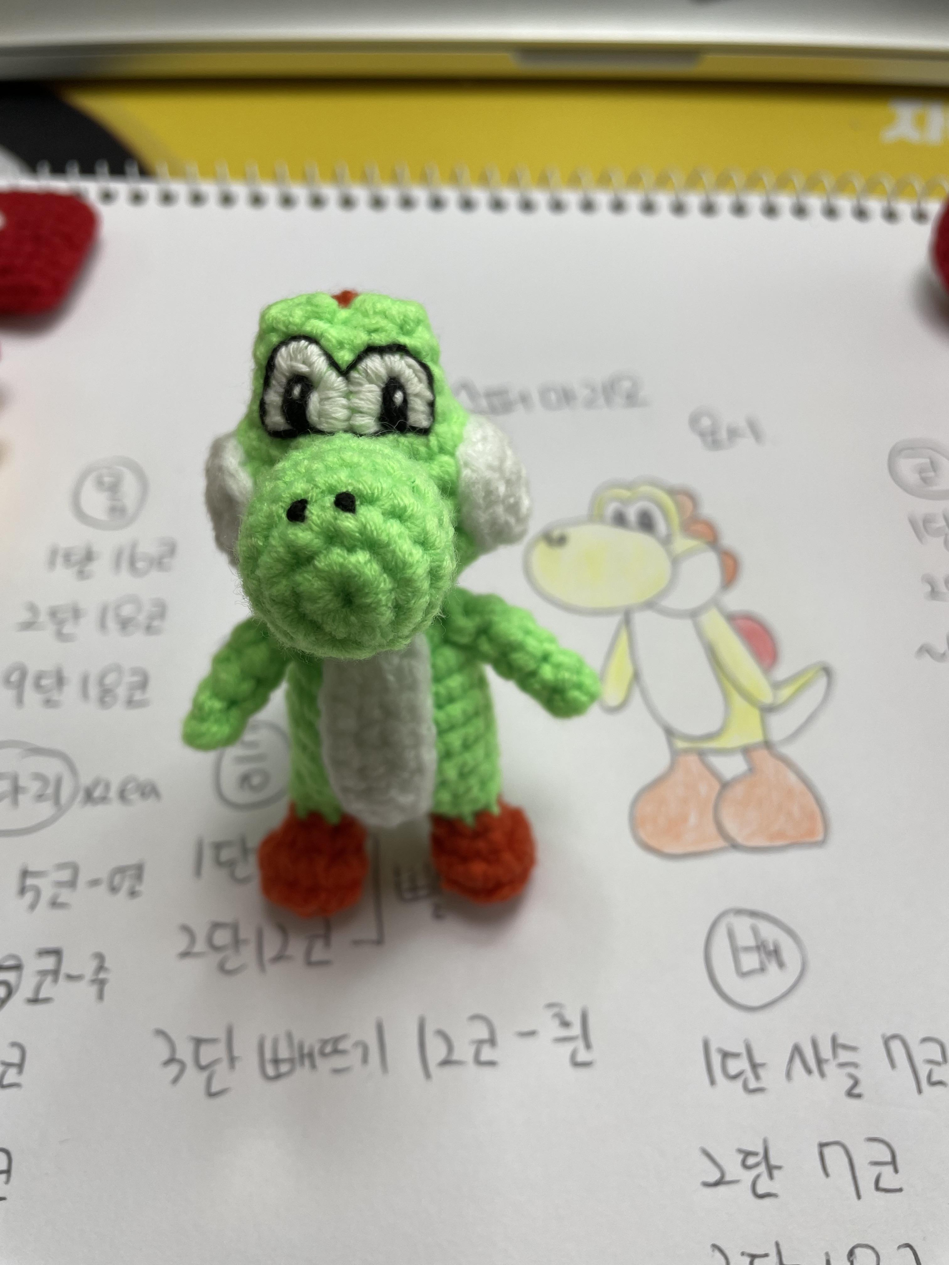 베개거지는 요즘 슈퍼마리오에 푹 빠져있어요. 그래서 관련 손뜨개 인형을 만들고 있습니다.
