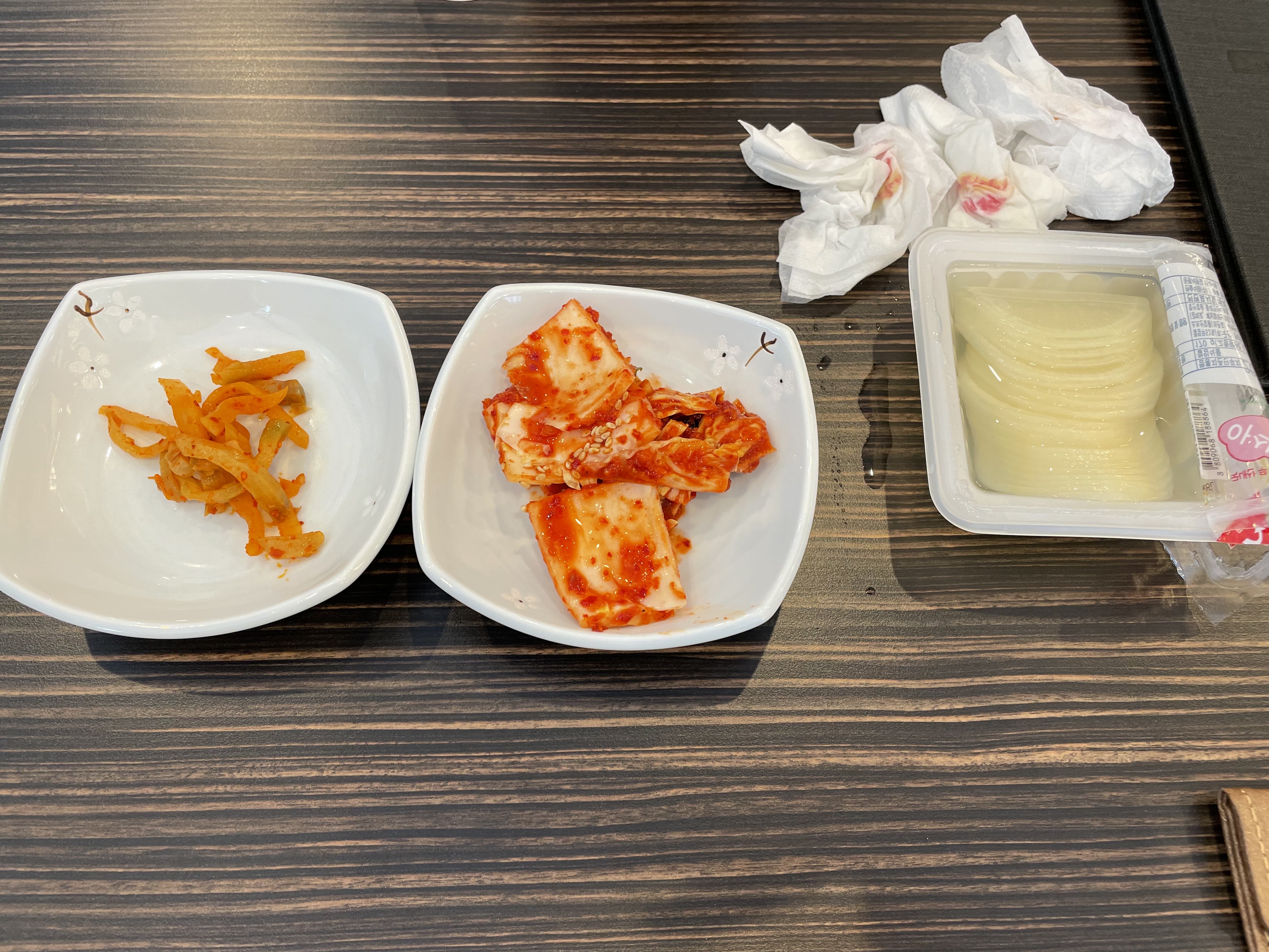 단무지랑 짜사이 물이 기본 세팅되어옵니다.