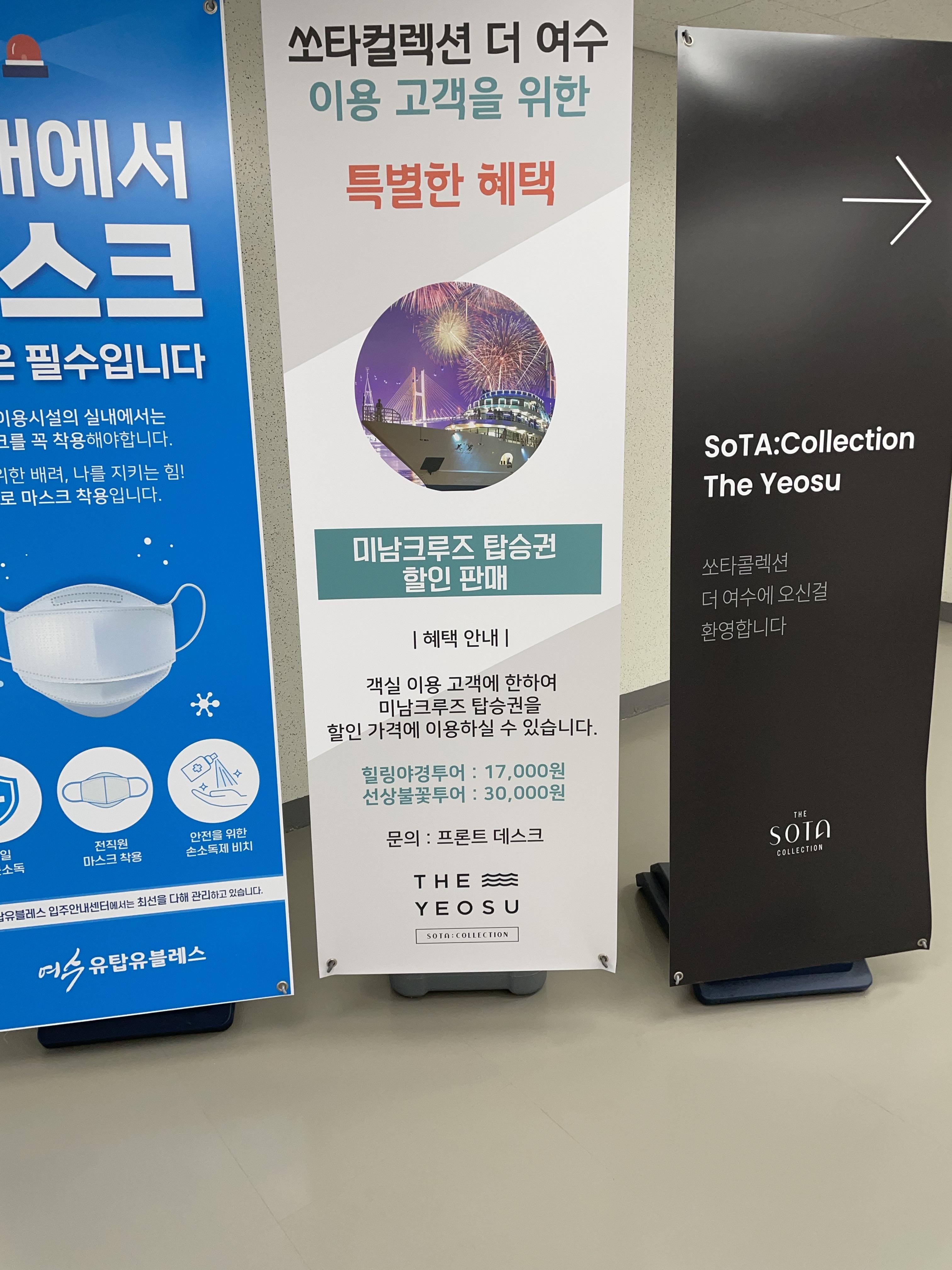 쏘타컬렉션 더 여수는 오피스텔느낌이 물씬나요. 실제로 거주하시는분들도 계신듯 했습니다. 장박도 하시는거 같구요.