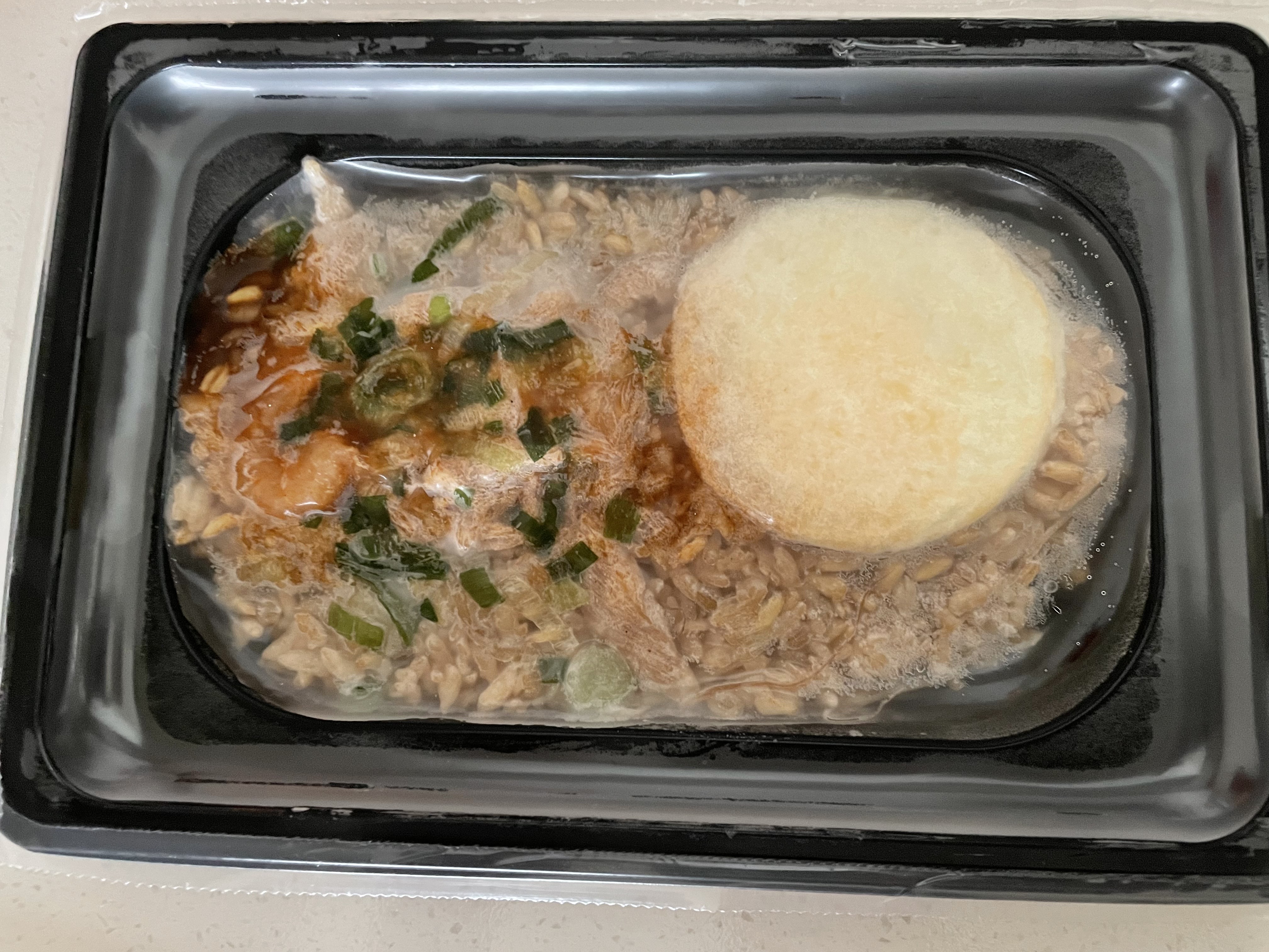 아마도 동그란건 계란후라이인듯?? 이것때문에 이렇게 플라스틱 포장을 했을지도 모르겠네요. 모양 흐트러지지 않게.