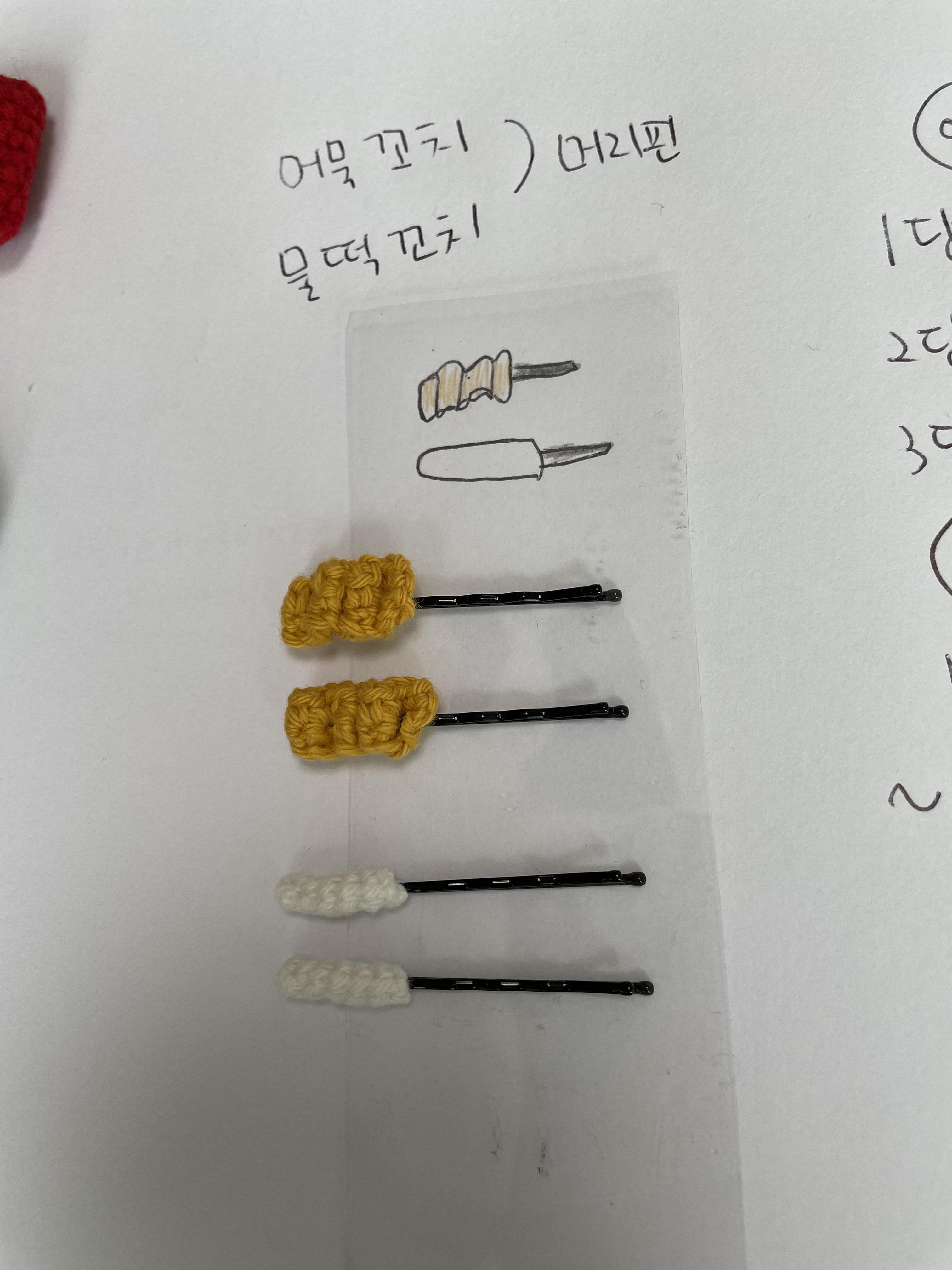 어묵꼬치 머리핀, 물떡꼬치 머리핀만들기는 베개거지 유튜브로도 제작되었습니다.