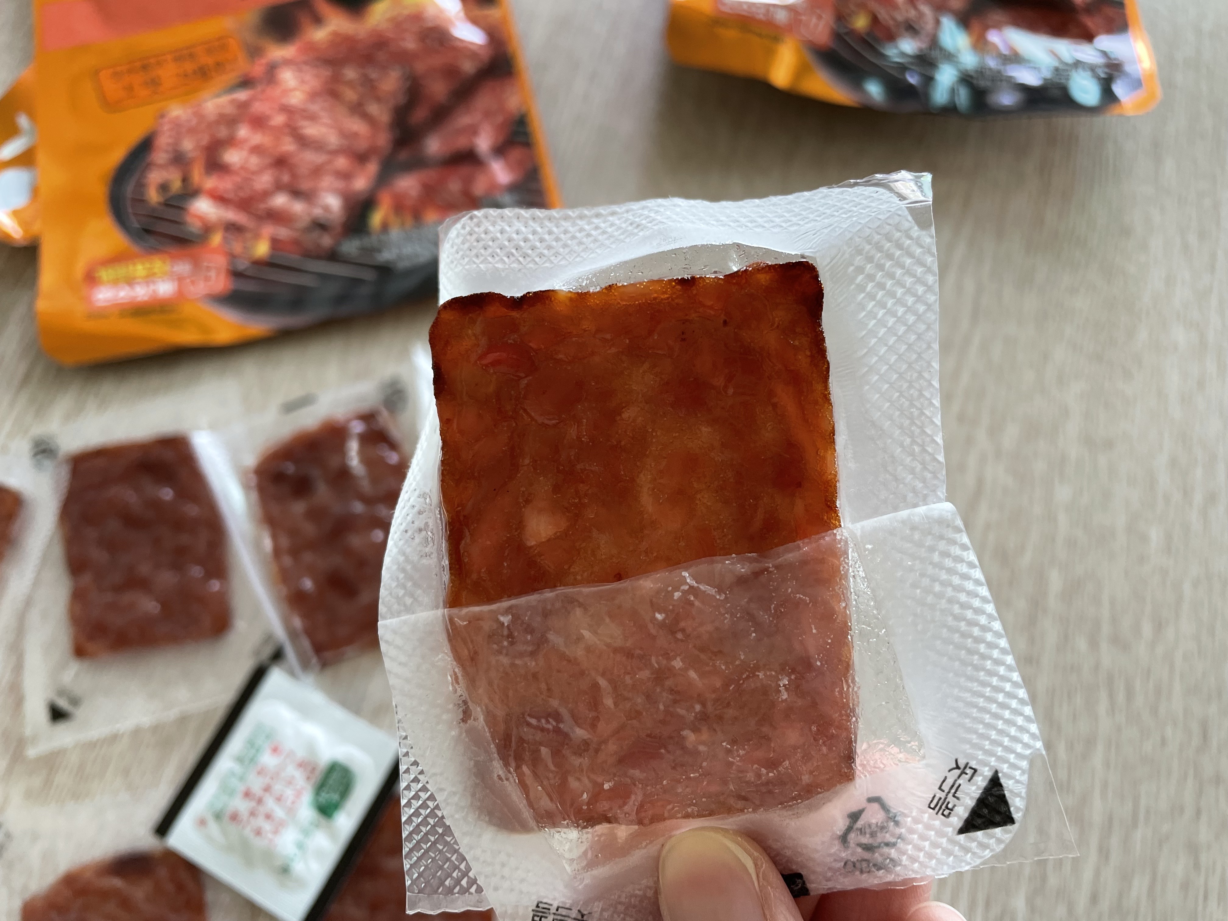 손에 힘이 없으면 저것도 뜯는게 힘들데이... ㅋㅋㅋㅋㅋㅋ나이먹을수록 손끝에 힘이 안드가.......한입 먹어보았습니다.