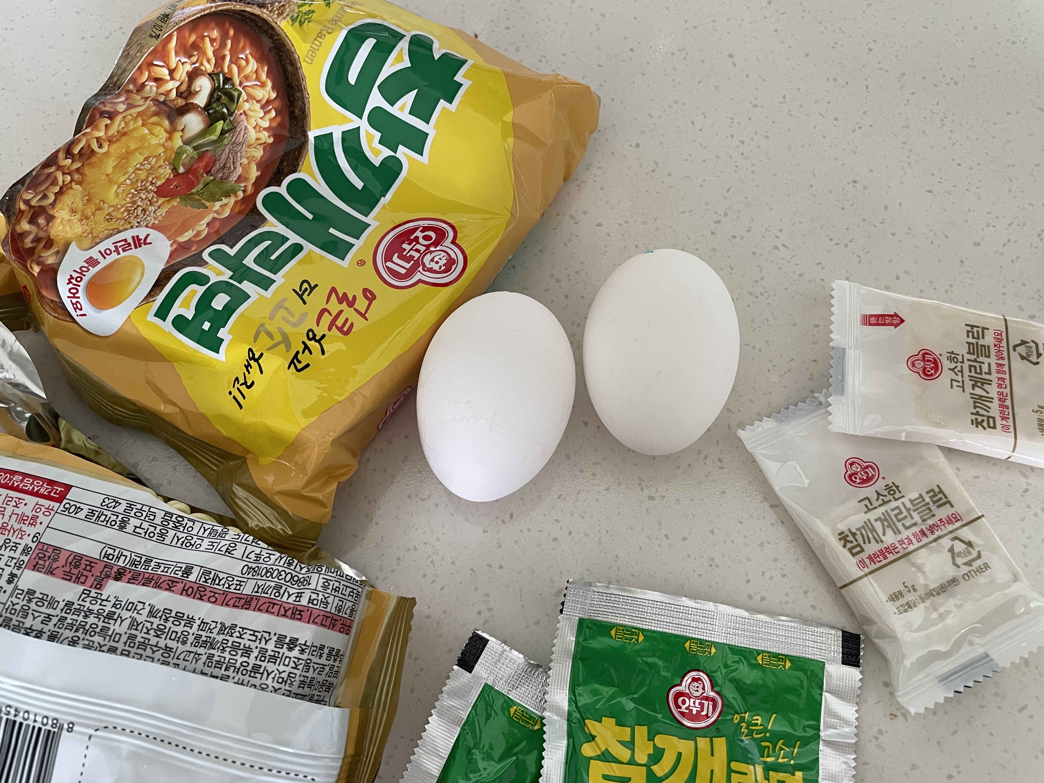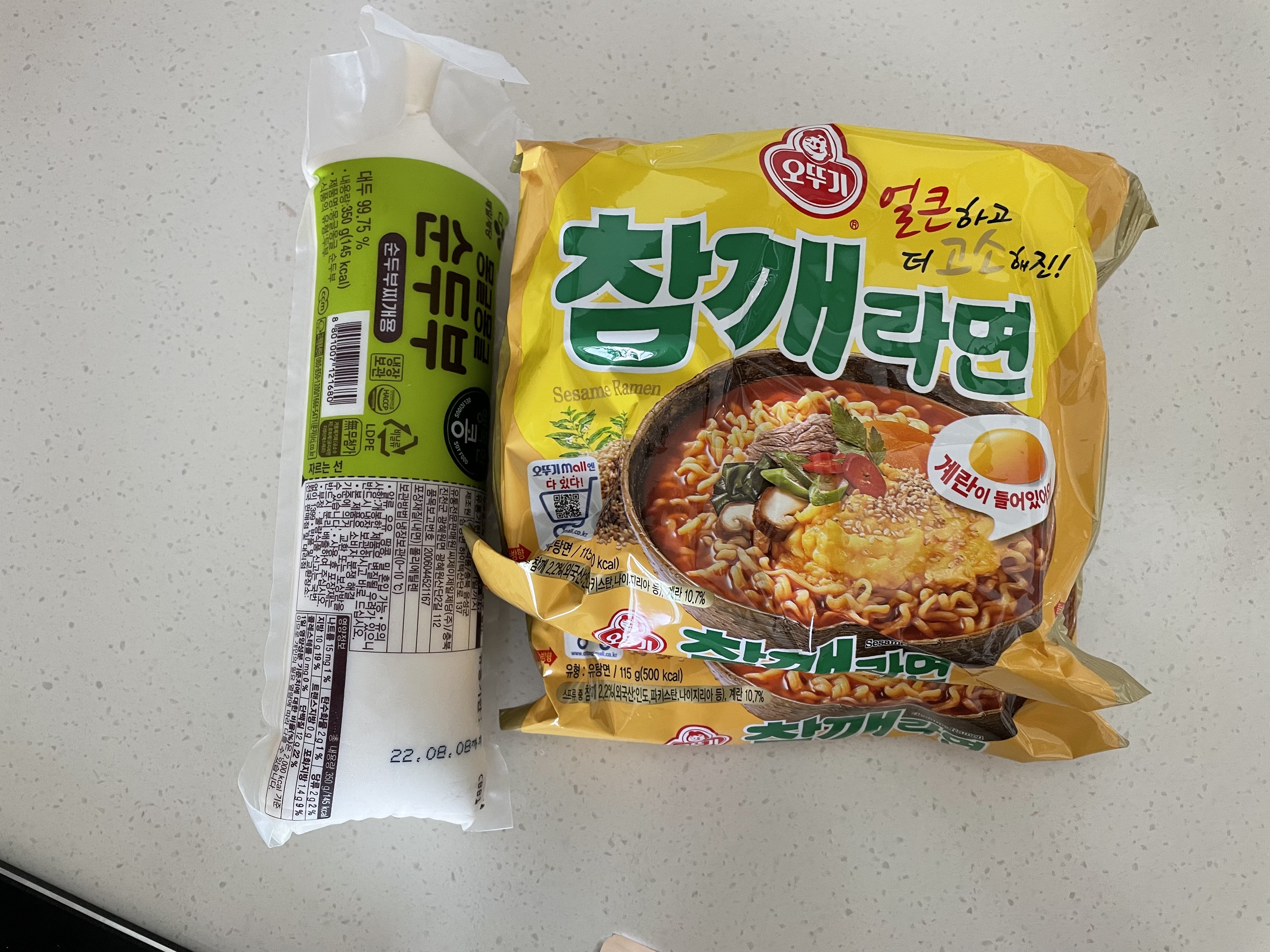 참깨라면 2봉지와 순두부1봉지. 혼자먹는거 아님!! 둘이먹는거임.