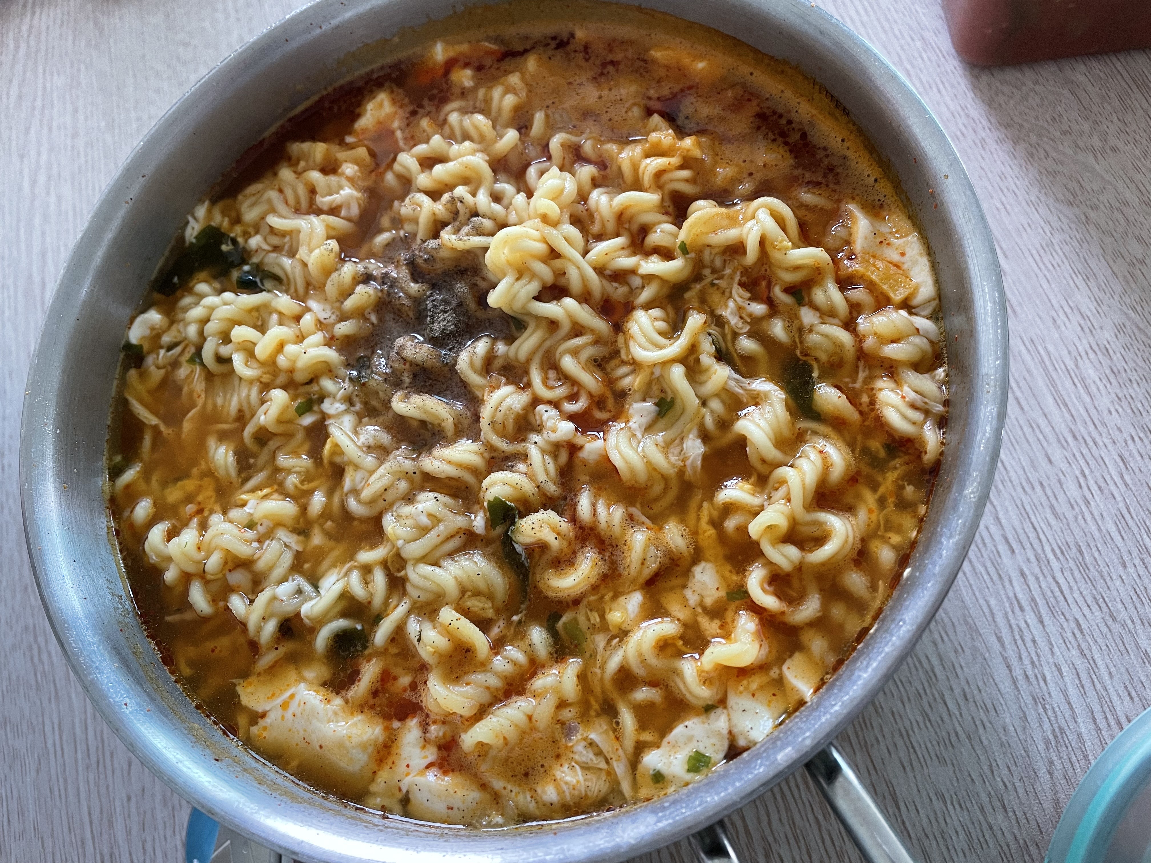 이 냄비 라면두개끓이는데 완전 적합한 냄비임에도 불구하고 추가로넣은 순두부와 계란때문인지 넘치고 난리남...
