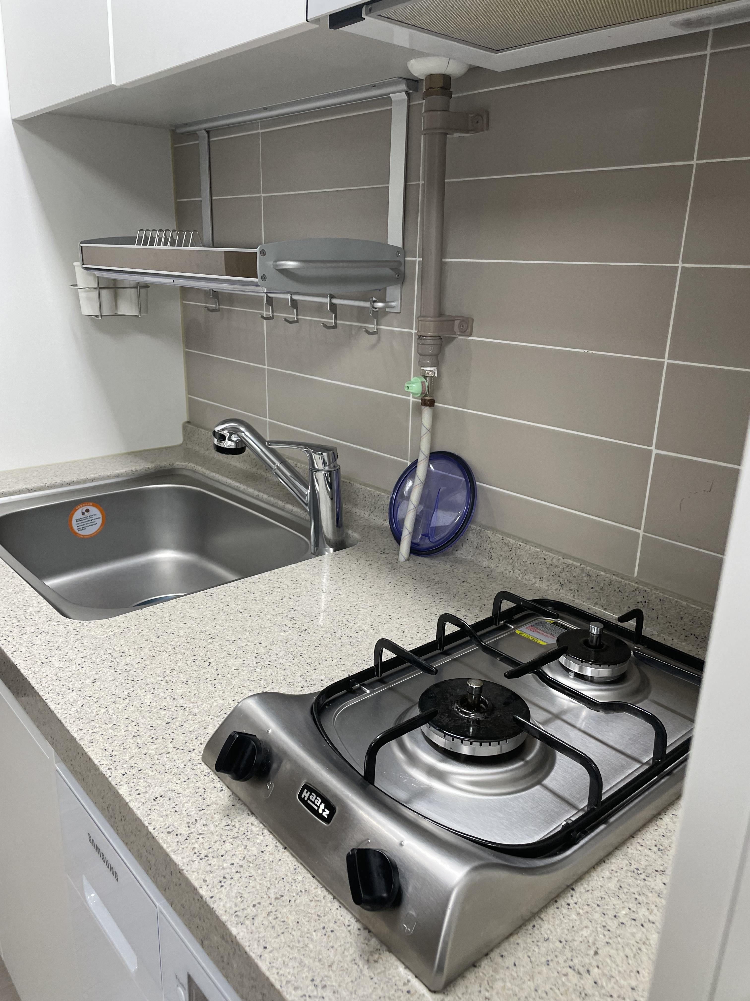 가스렝지 밑에 세탁기도 있슴다. 역시나 한번도 안사용함. 장기숙박일경우에는 세탁기 진짜 요긴할듯합니다.