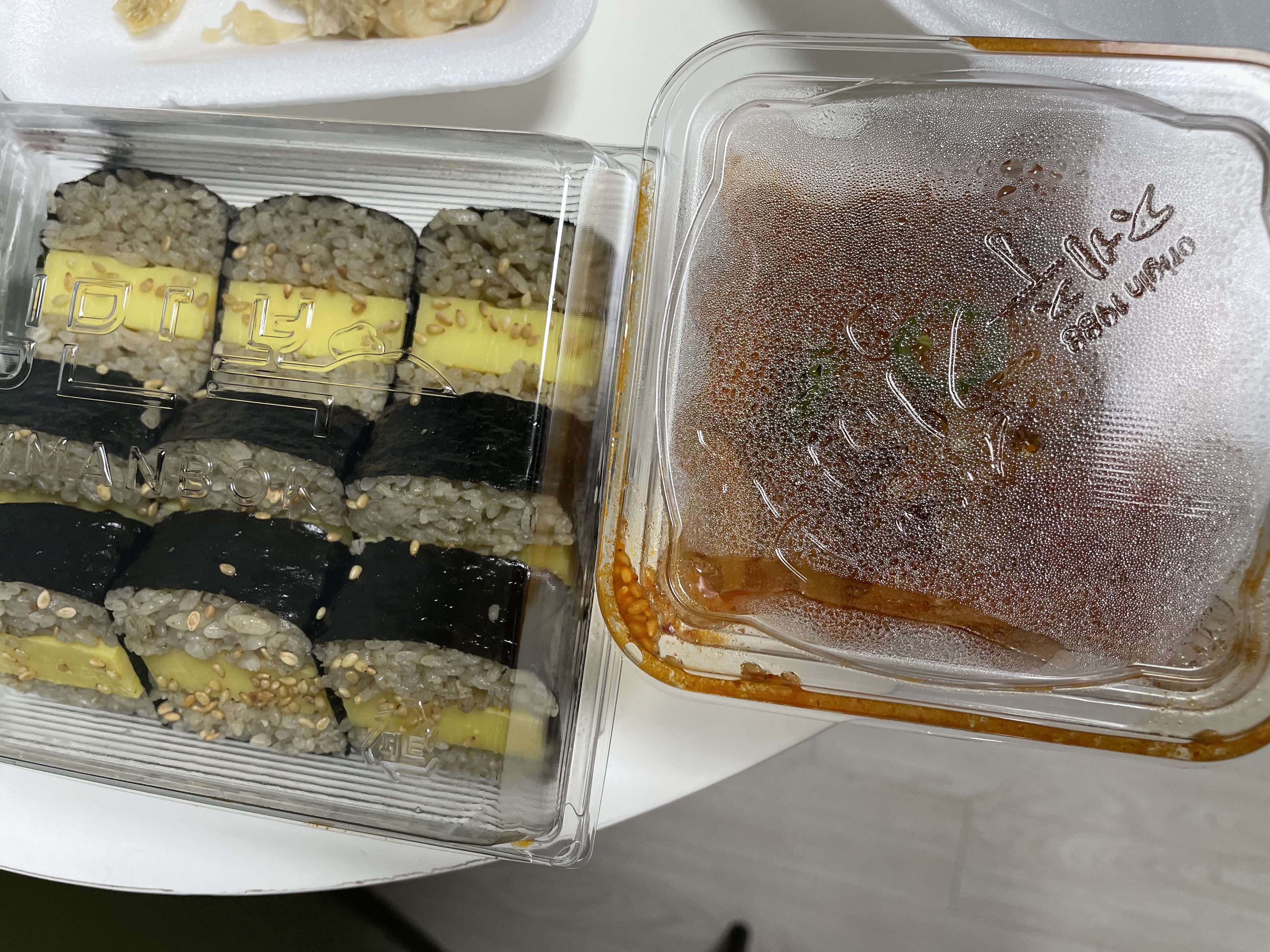 마치 충무김밥서타일로~오징어무침은 짭쪼름하면서 달달했는데요. 그나마 같이 먹으니까 좀 맛이 나는거 같기는 하지만 충무김밥처럼 환장의 짝꿍처럼은 안느껴졌습니다.