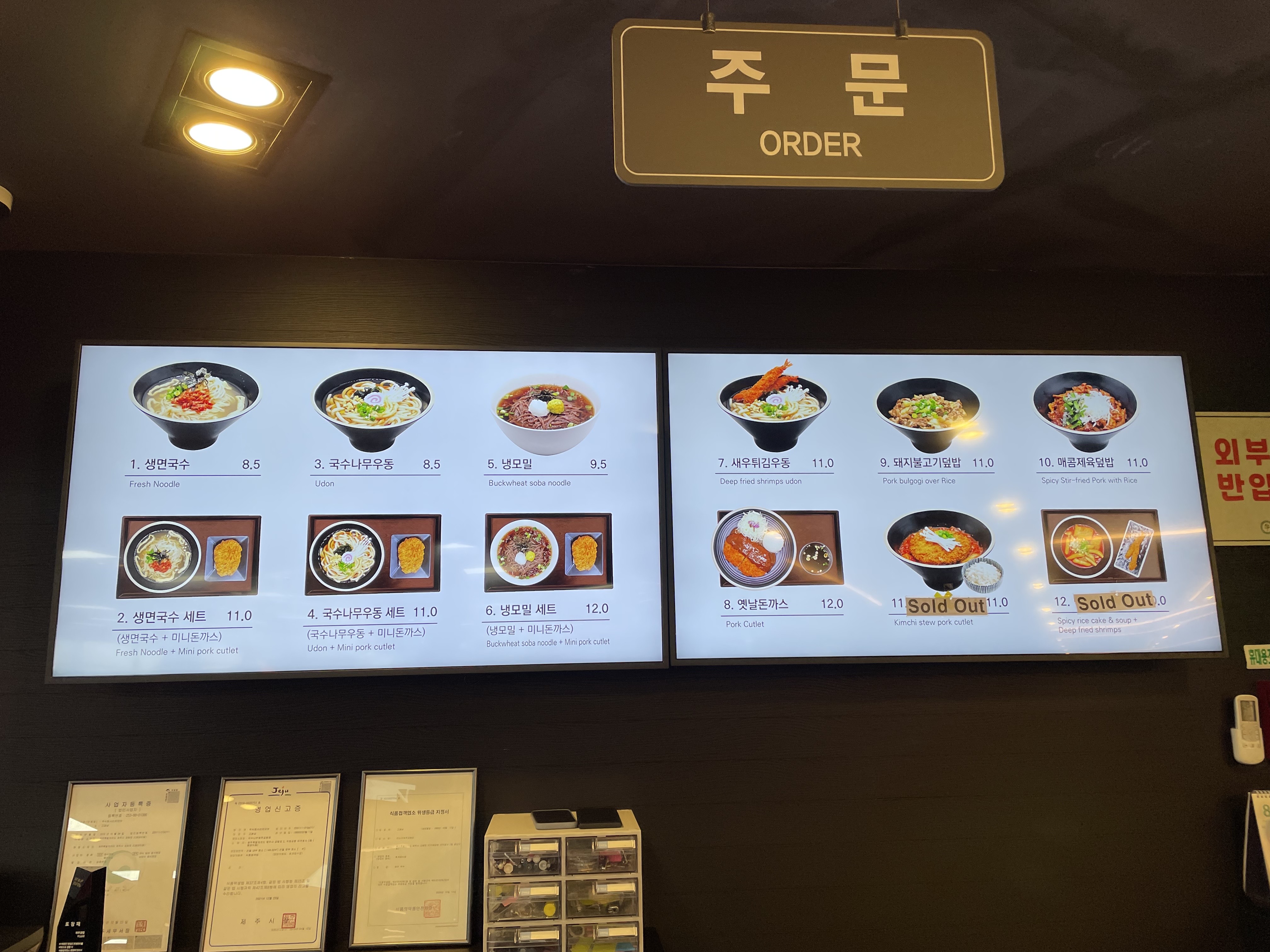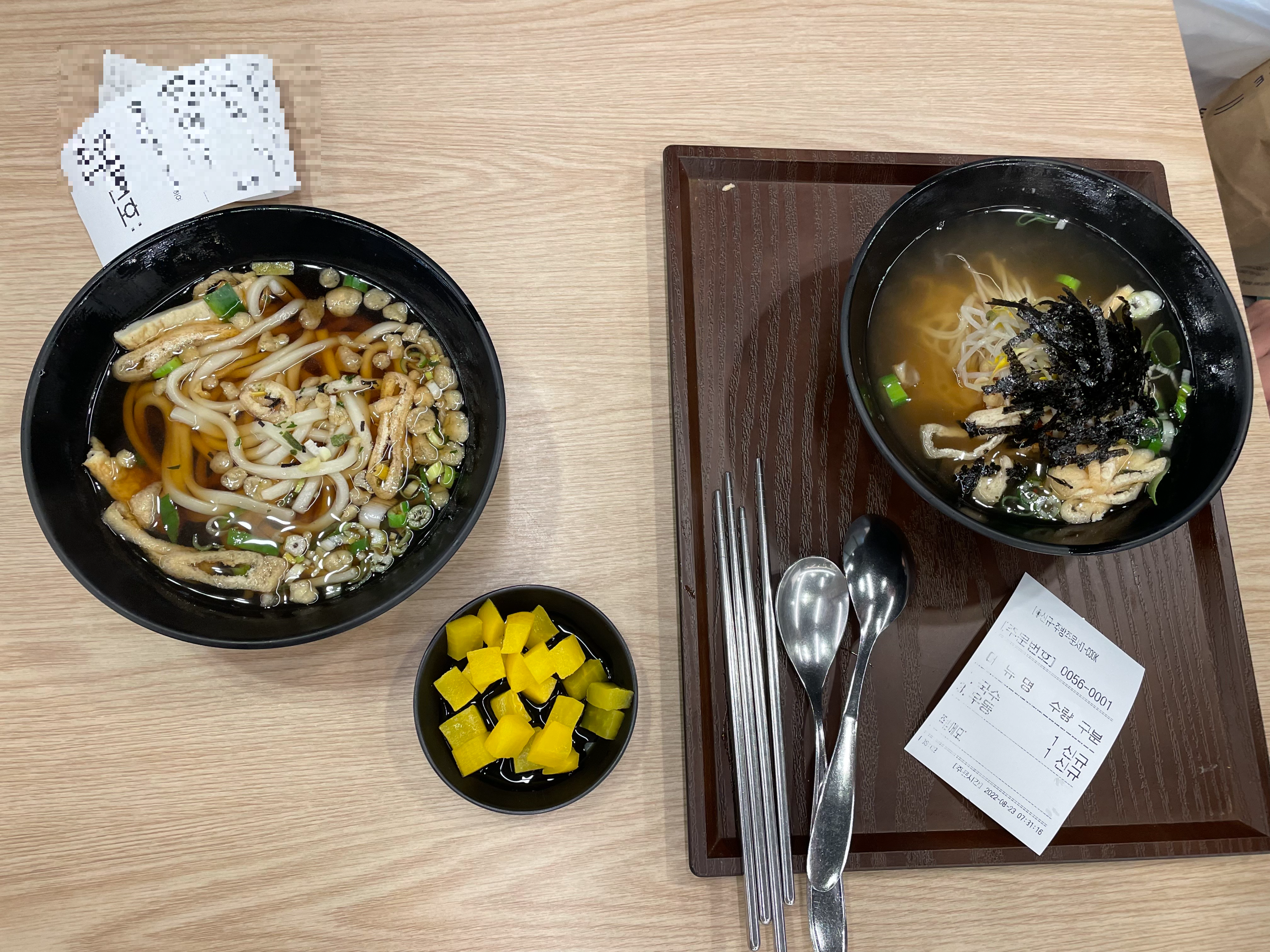 그래서 준하우스는 생면국수, 베개거지는 우동을 주문했어요.