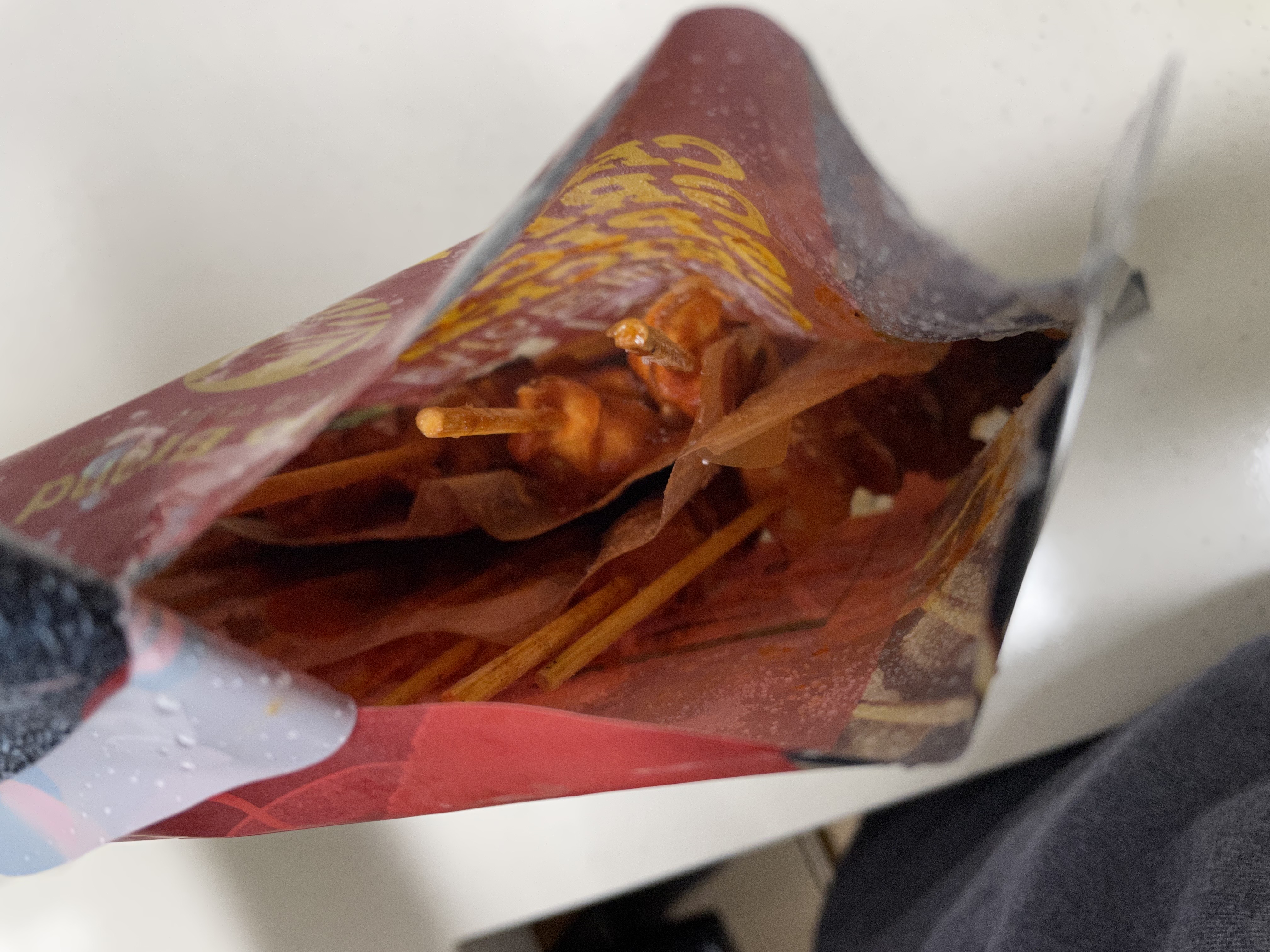 확 다 뜯어서 빼내면 잘 떨어질거같은데 한방에 다 못먹을거 같으니(당연한걸까요? ㅋㅋㅋ) 구멍을 작게 뜯어서 꺼냈습니다.