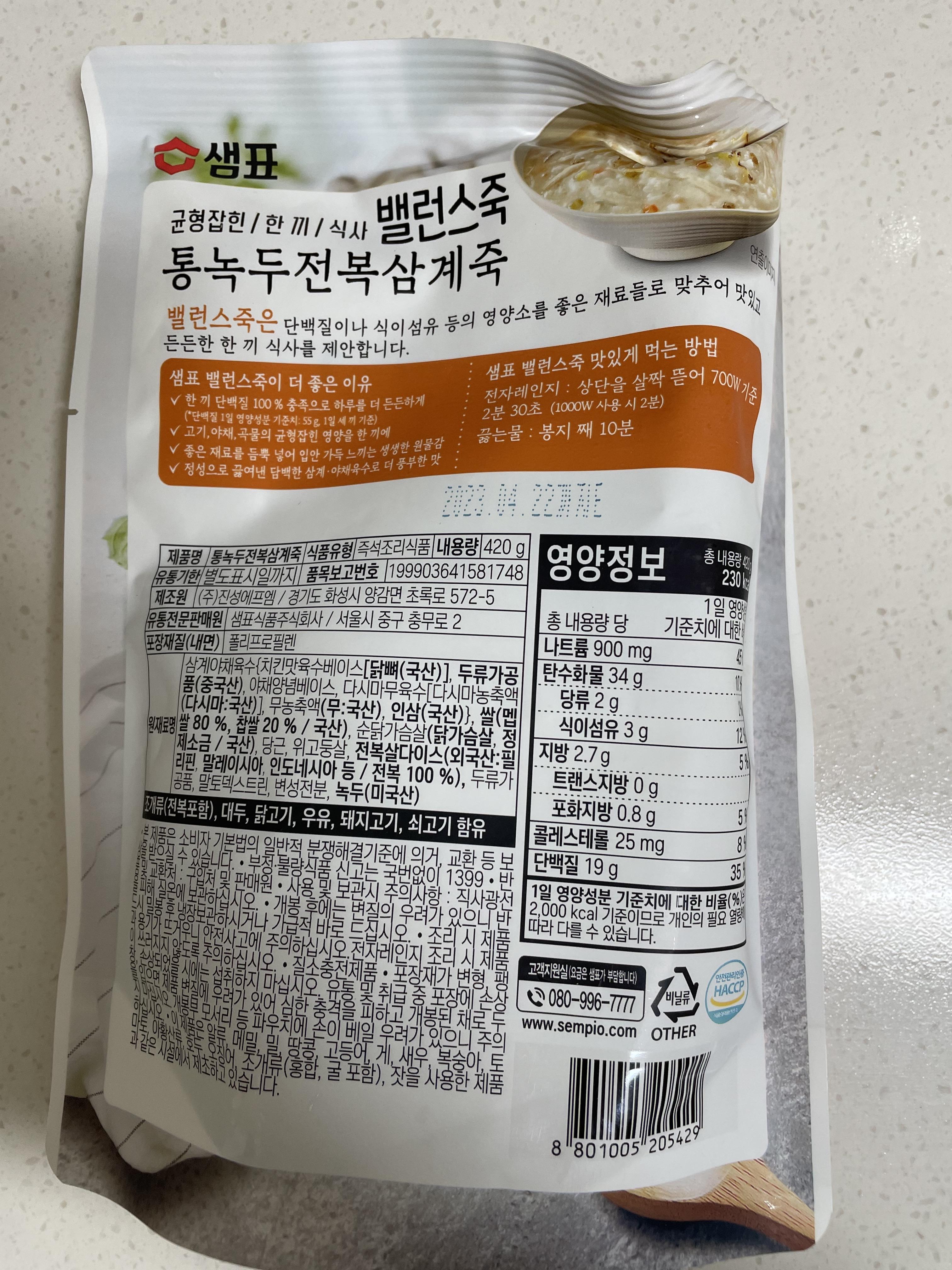 아무래도 닭죽 특성상 비린내가 안날수가 없는데 샘표 밸런스죽은 비린내가 안나더라고요??