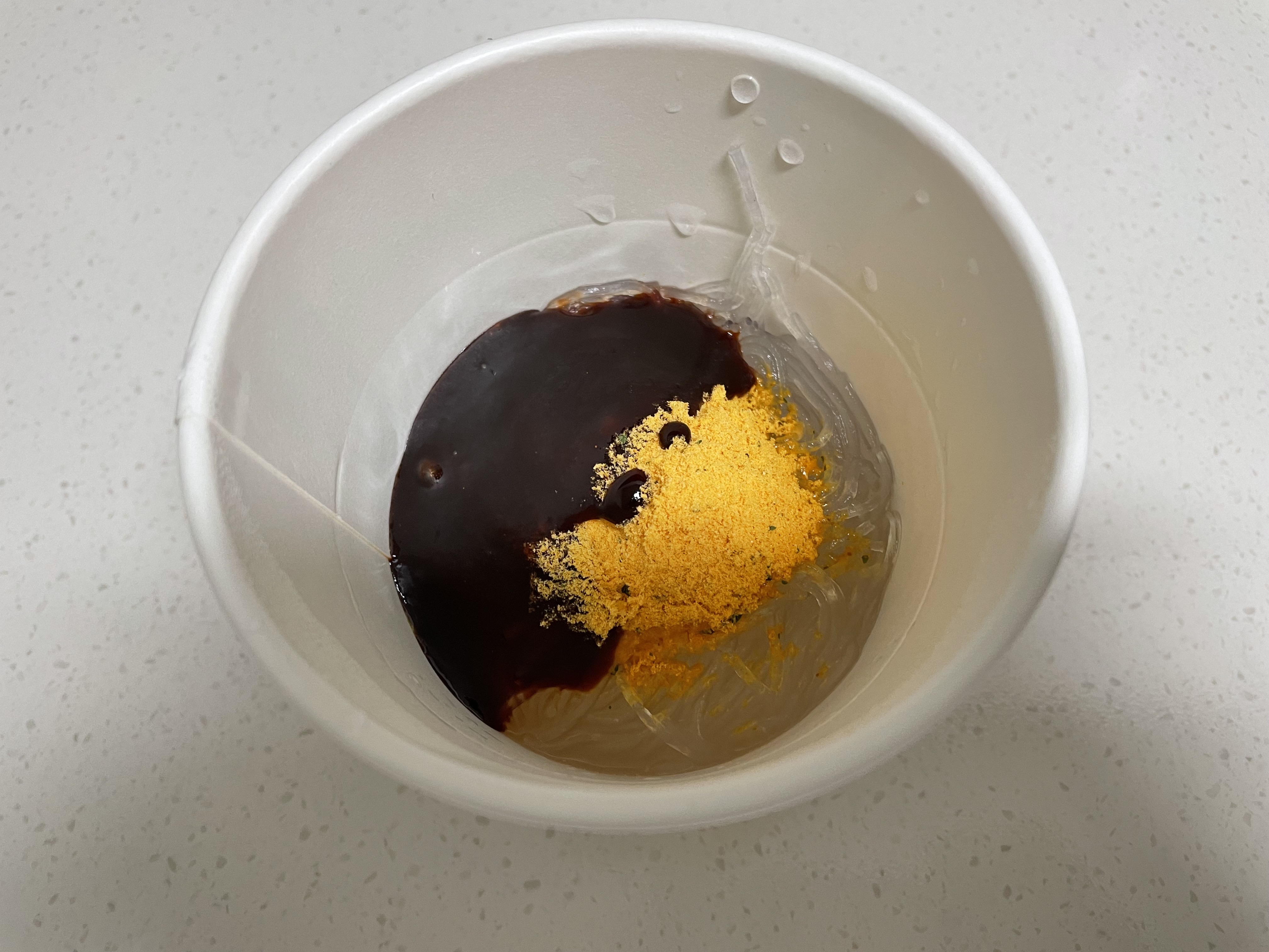 스프는 그대로 두고 컵에 끓는물 부어서 4분 기다림.