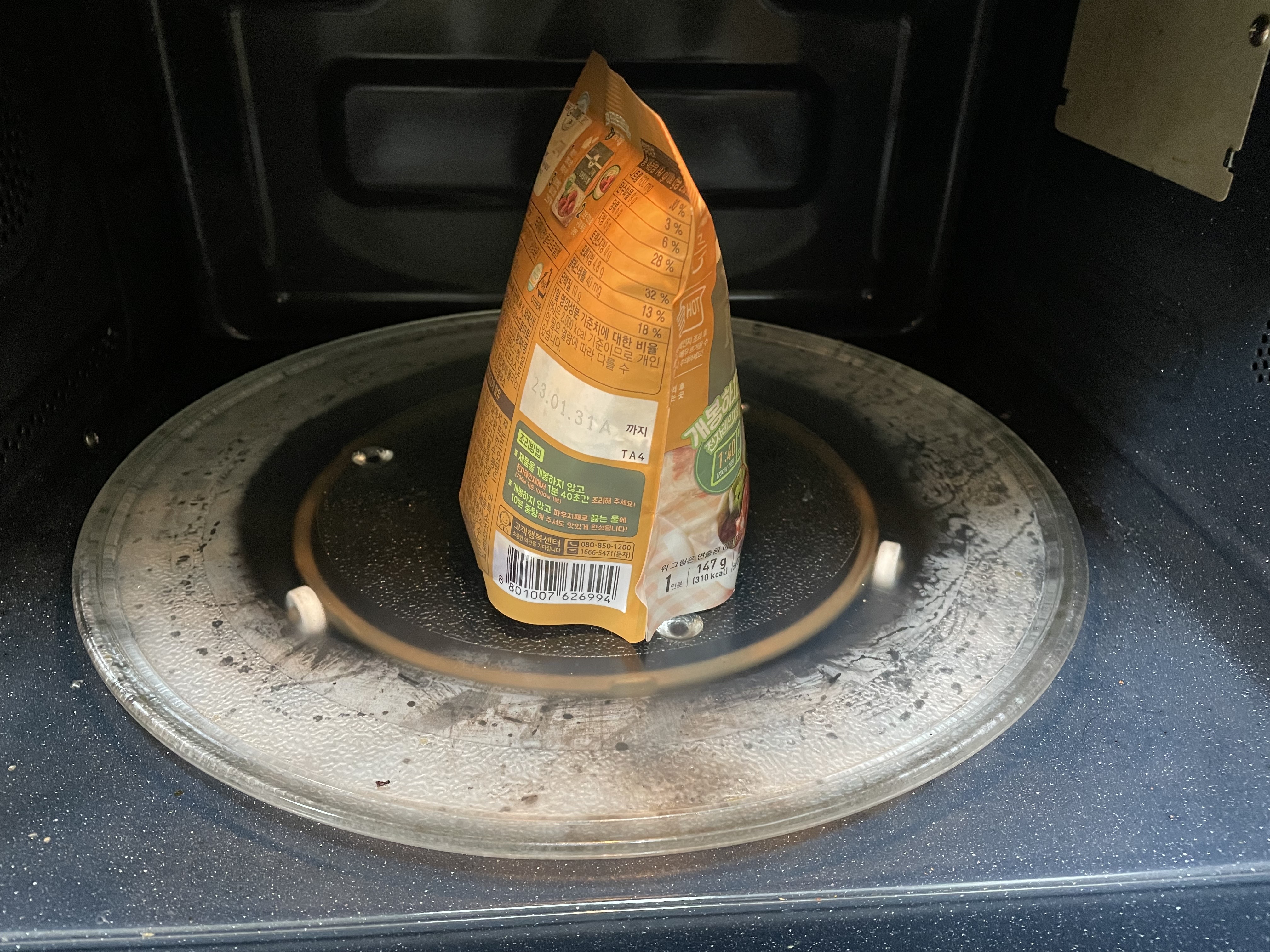 그래서 이건 무조건 맛있을거같다라고 생각했습니다. 유후~그리고 개봉안하고 전자랜지에서 1분40초만 돌려주면 되는 아주 귀차니스트들에게는 신문물임!!