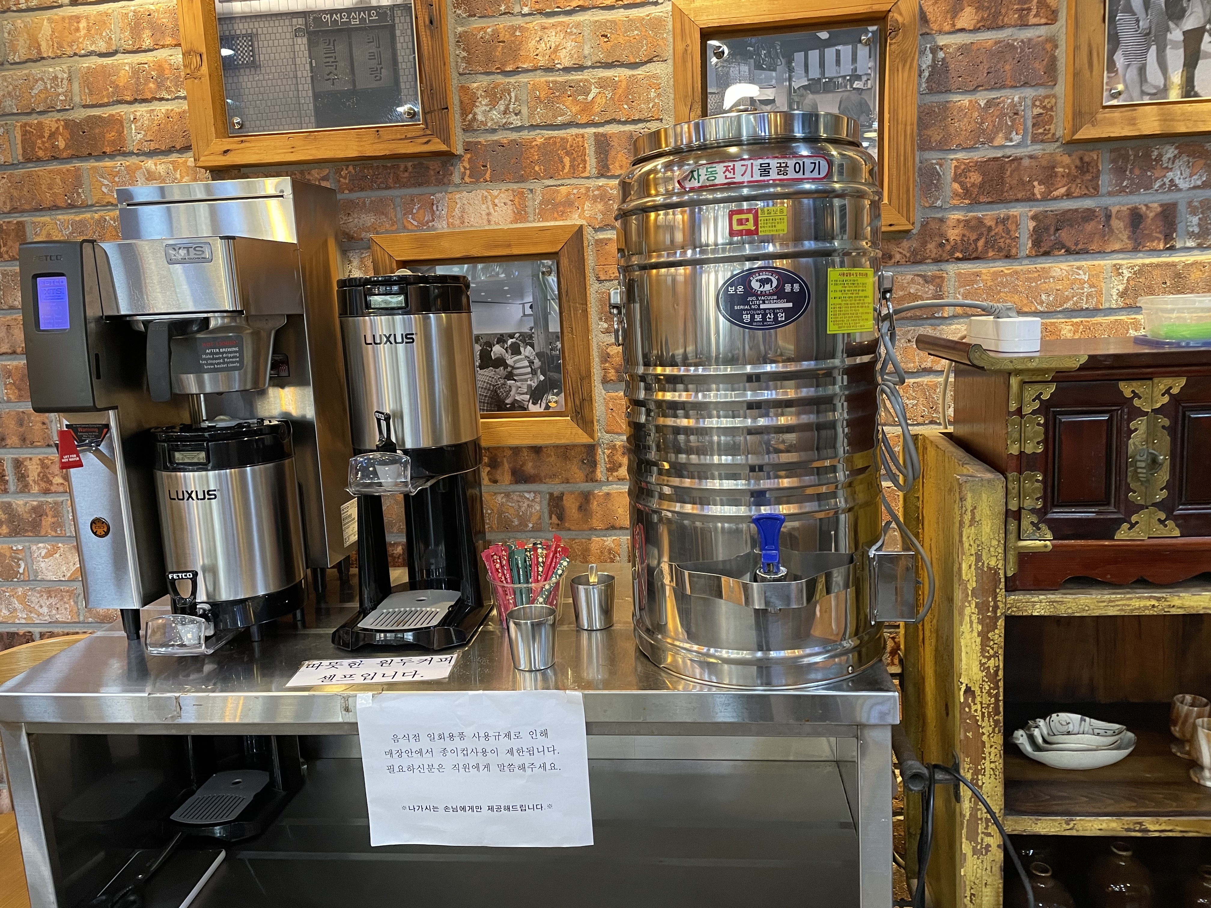 후식으로 원두커피 드셔도 되는데...음......직원분에게 종이컵을 요청해서 받아서 나가는 시스템입니다.