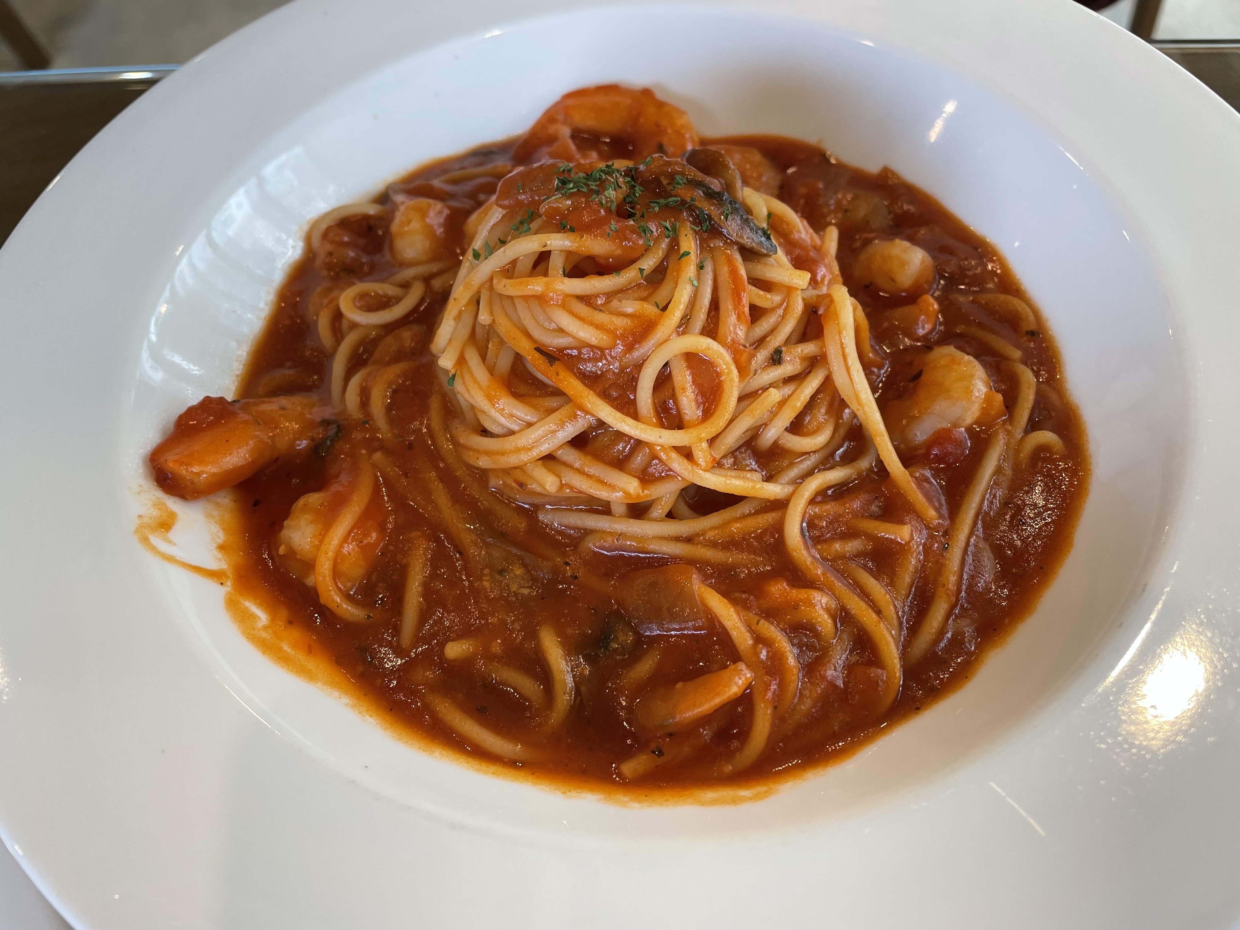 두명이 갔는데 등심돈까스9천원, 새우토마토파스타12천원, 오므라이스8천원 요로케 세개를 주문했습니다.