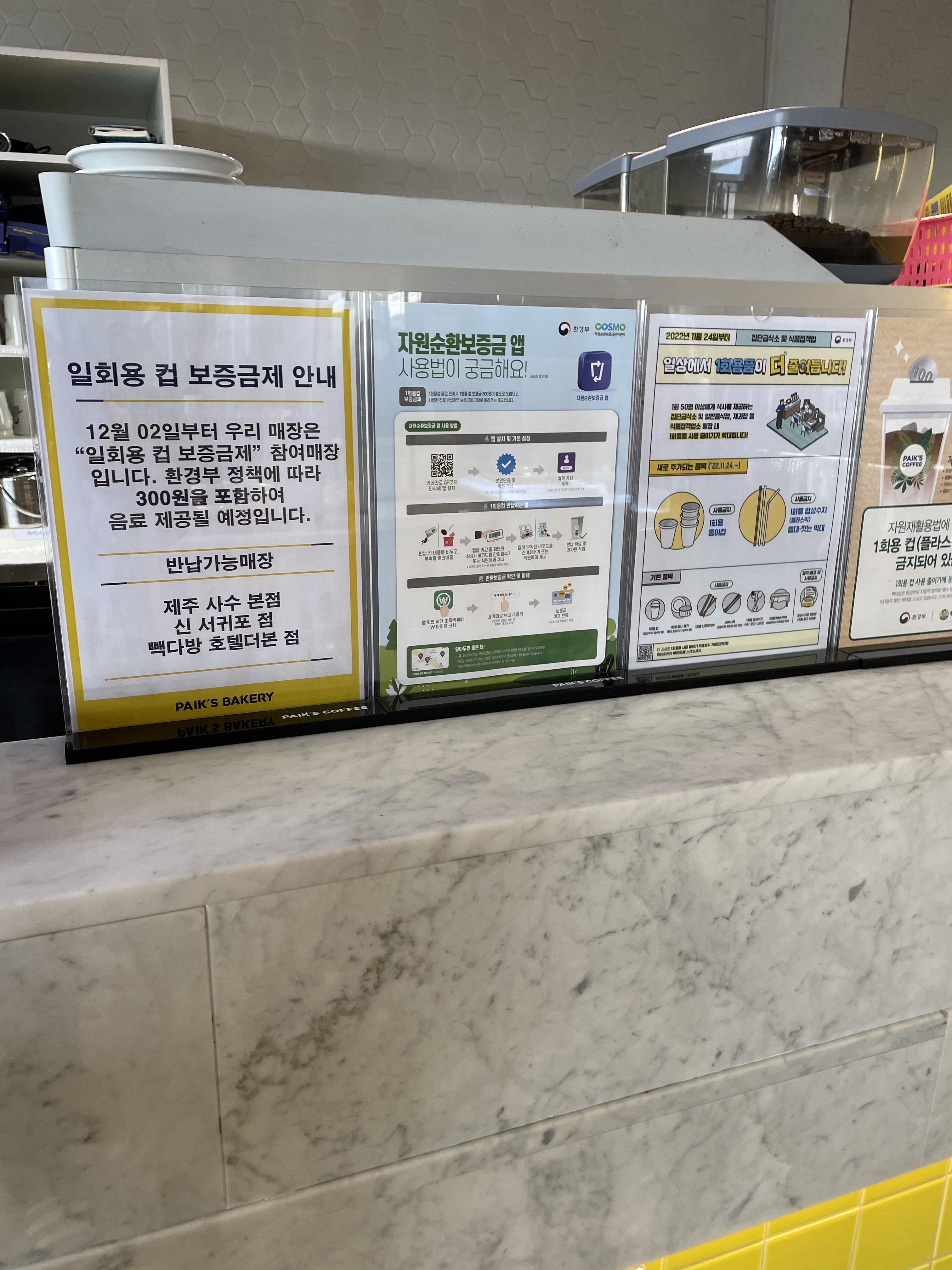 지난번에왔을때는 스타벅스정도만 시행하고있었는데 이제 빽다방도 시행중이더라구요?