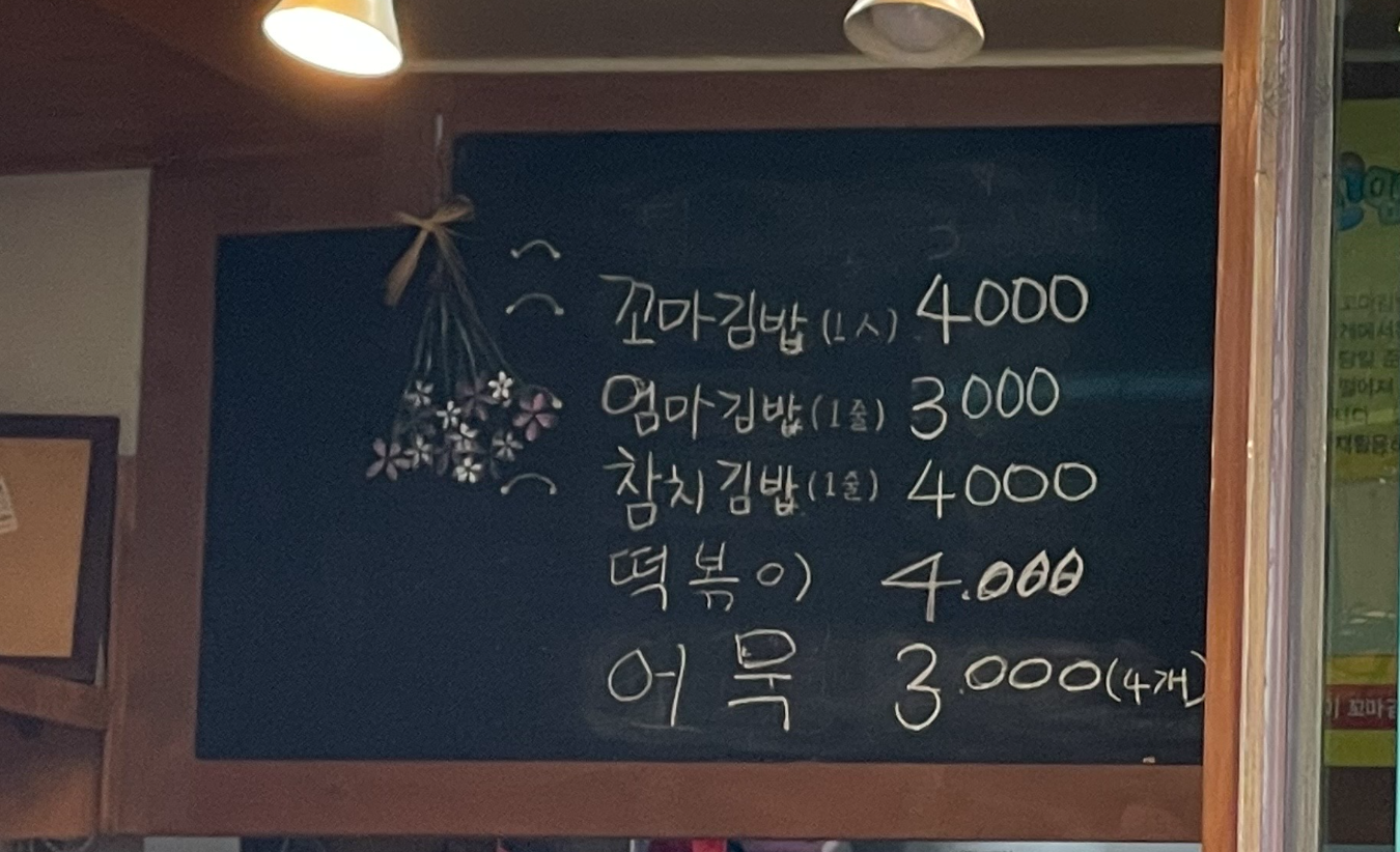 꼬망이 꼬망이꼬마김밥이니까 꼬마김밥이 메인입니다.