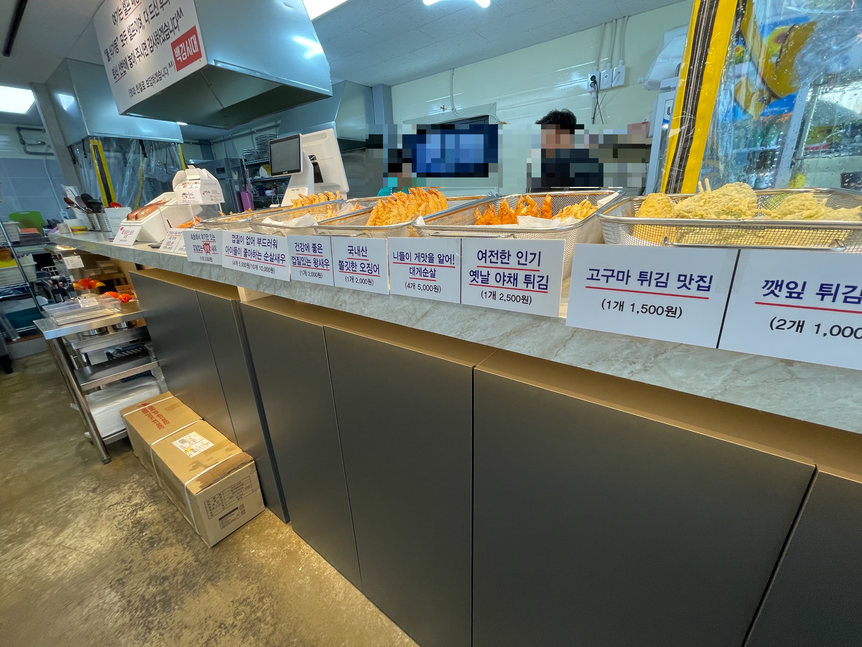 아무래도 튀김골목은 매장안이아니라 먼지나 외부오염을 피할수 없을텐데요. 여기는 아주 쾌적함. 최고 맘에듬 ㅋ지금보니까 누룽지오징어순대가 있었네요. 나는 왜 그냥왔을까.. ㅋㅋ메뉴판도 깔끔쓰~사실 그냥 새우튀김만 먹을라고했는데 세트매뉴가 있어서 친구세트 12000원을 주문 했습니다.아.. 다 먹고싶다.이거저거 포장만 안했어도 그냥 매장에서 국물떡볶이에 튀김먹으면 최고일거같당. 주류판매도 하고있어요.나는 왜 새우강정을 사지 않았는가에대한 고찰. ㅋㅋㅋㅋ가게에서 개발한 매콤소스랑 담아주십니다.제가 너무 호들갑떨면서 사진을찍어서 그렁가.. ㅋㅋㅋ 서비스 꺳잎이랑 베이비크랩을 넣어주셨어요. ㅠㅠ 넘넘 감사합니다잉~