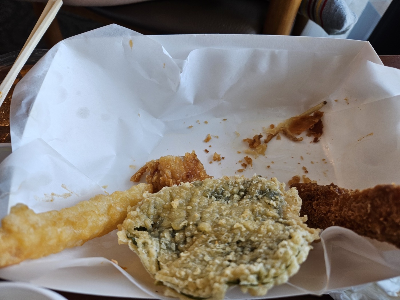 오징어도 그렇고 진짜 튀김옷이 얇으면서 바삭합니다.대게순살튀김입니다.왕새우튀김. 말해모행~깻잎튀김은 일식집에서 먹는 그맛임.포장한 음식도 많았는데 다 먹어가는듕....너무 아까엉.....보통 튀김사면 항상 남아서 그다음날 아침에 멍때리면서 먹었는데 이번엔 멍때리면서 먹을 튀김이 없다. ㅋㅋㅋ