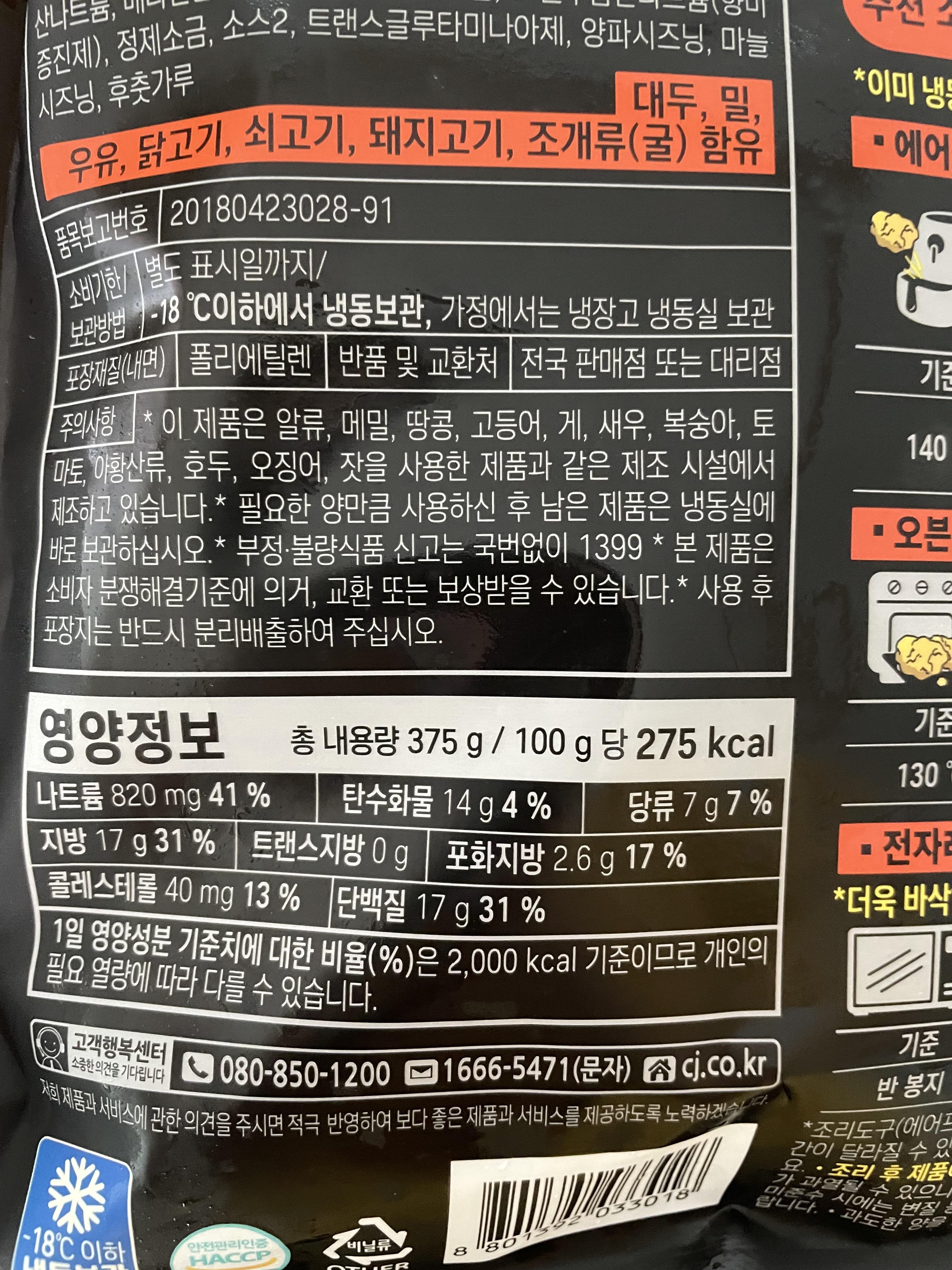 특이하게 140도 한봉지 다하면 11분간 돌려주면되구요. 중간에 한번 뒤집어 달라고합니다.