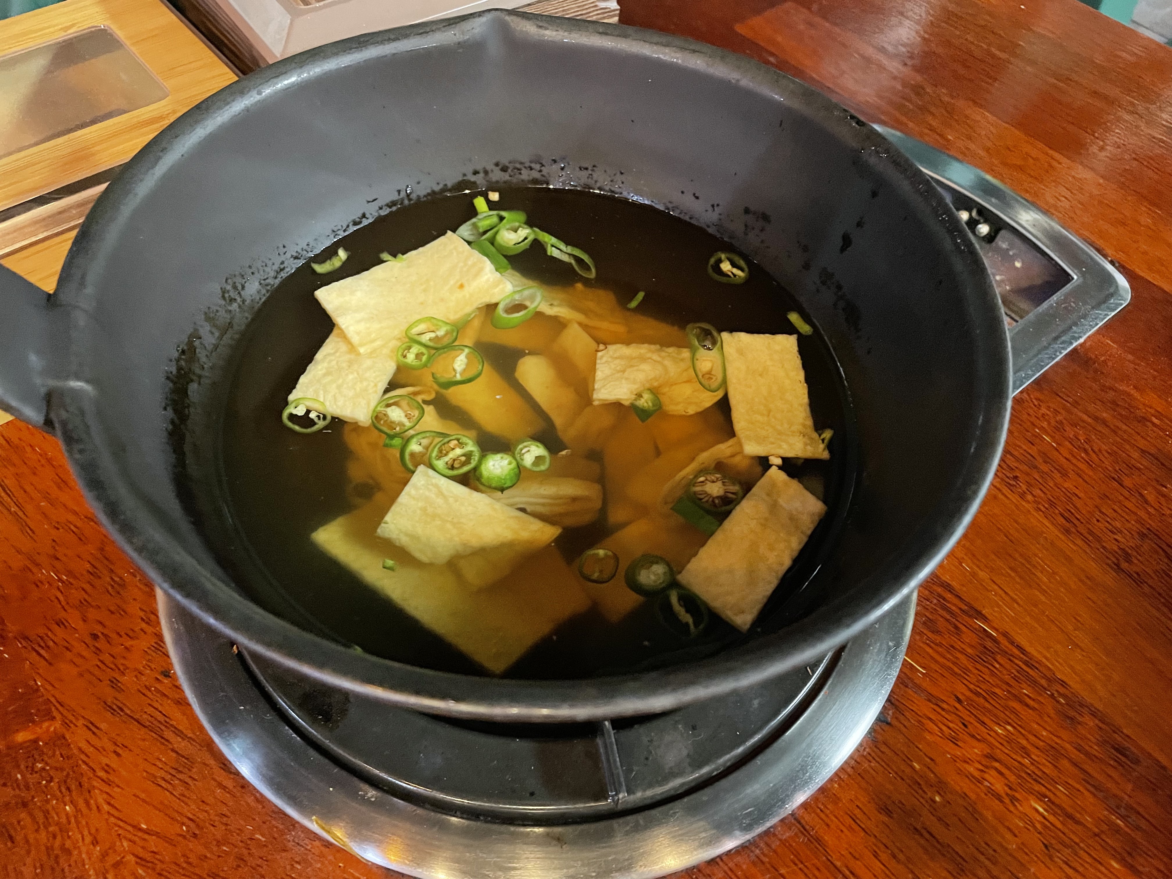 기본으로나오는 어묵탕. 쪼만한 화구에 올라가용.