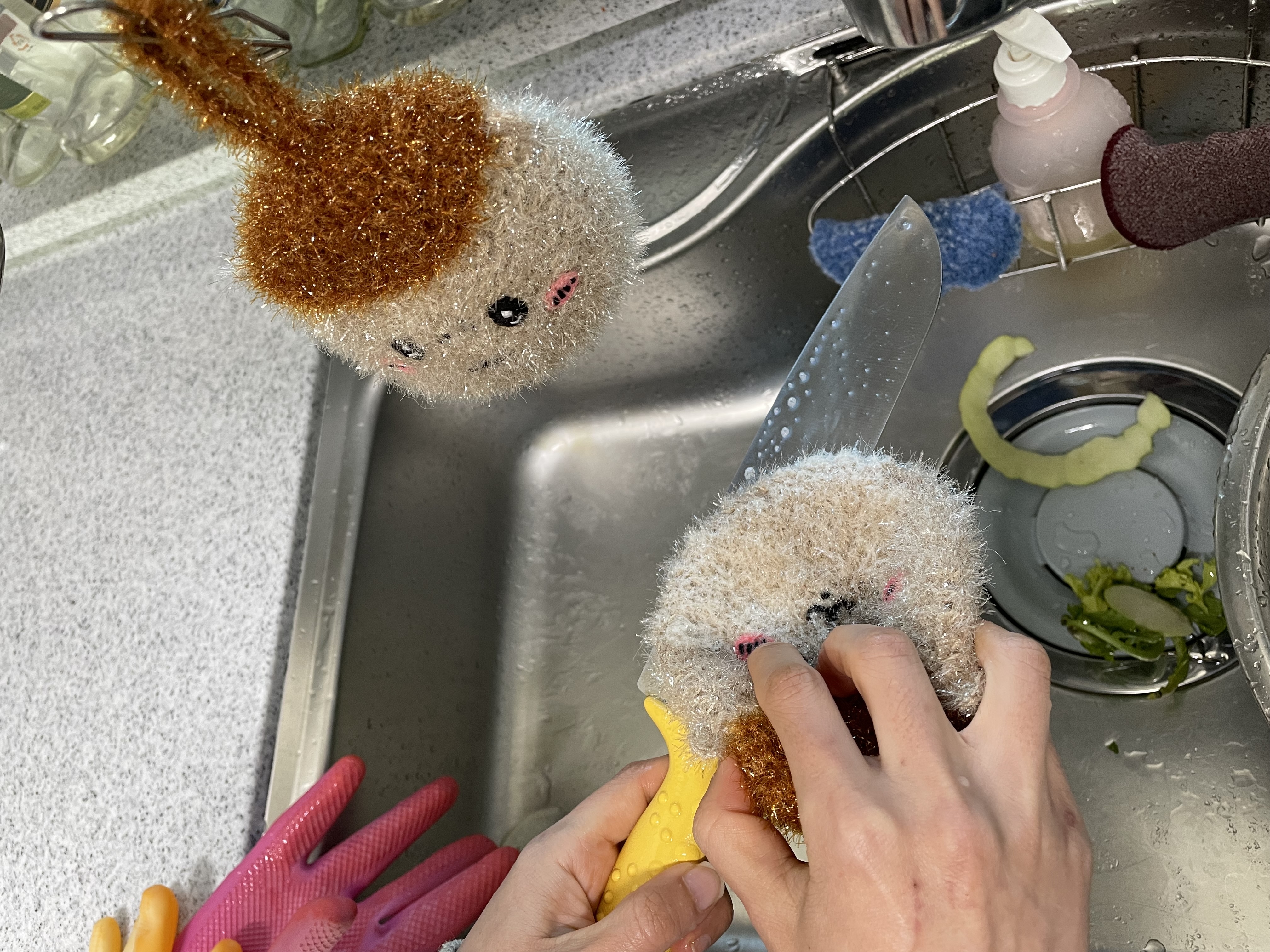 바로 만들어 봤습니다. 바로 먼작귀 쿠리만쥬 수세미!!