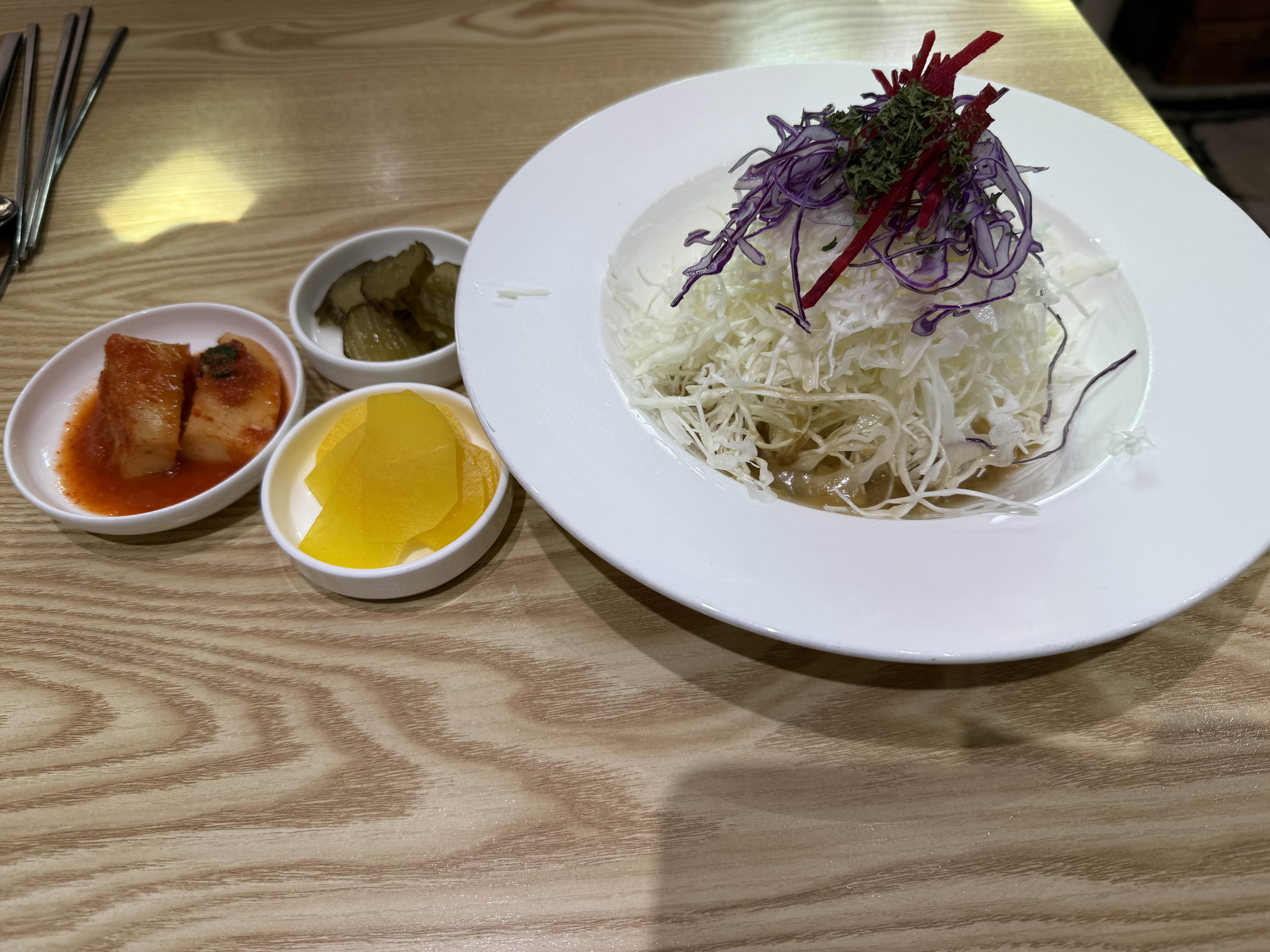근데 요거 비빔냉면!! 진짜 전혀 기대하지 않았는데 꽤나 맛있었어요. 돈까스의 느끼함을 잡아주는맛!!