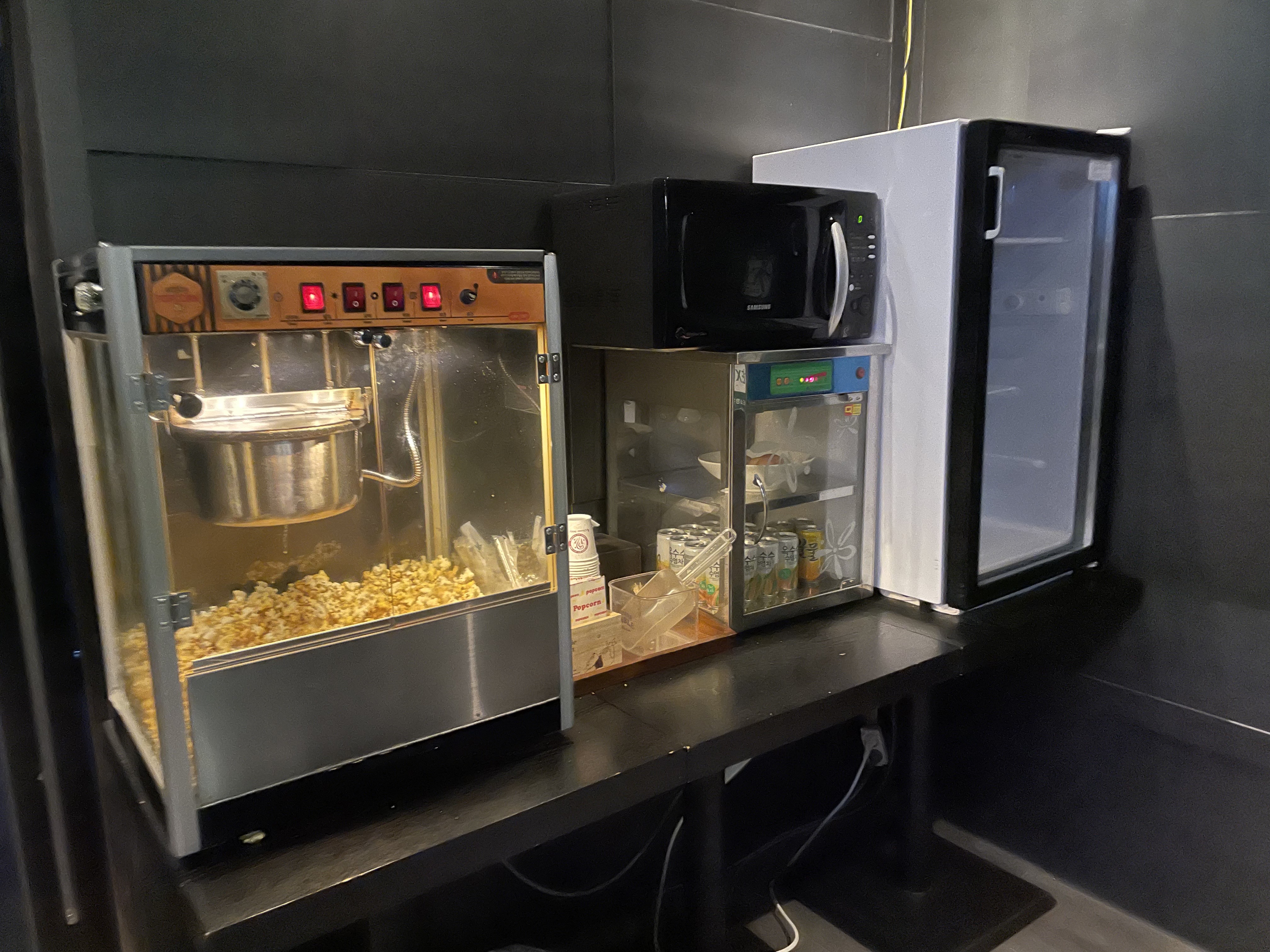 그리고 팝콘도 퍼가지고 왔는데요. 팝콘 기본맛이랑 카라멜맛 두종류가 섞여있는데 여기 진심 팝콘 맛집임. ㅋㅋㅋ
